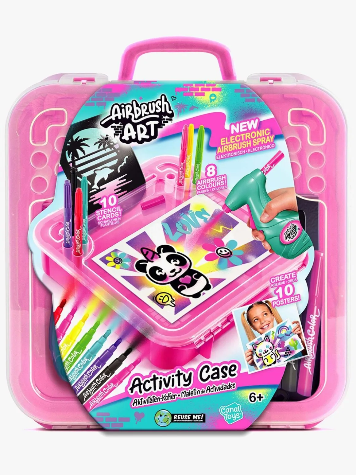 – Indeholder: 1 taske, 1 airbrush, 8 airbrushfarver, 10 stencilskabeloner, 10 papirark, 1 brugsvejledning.