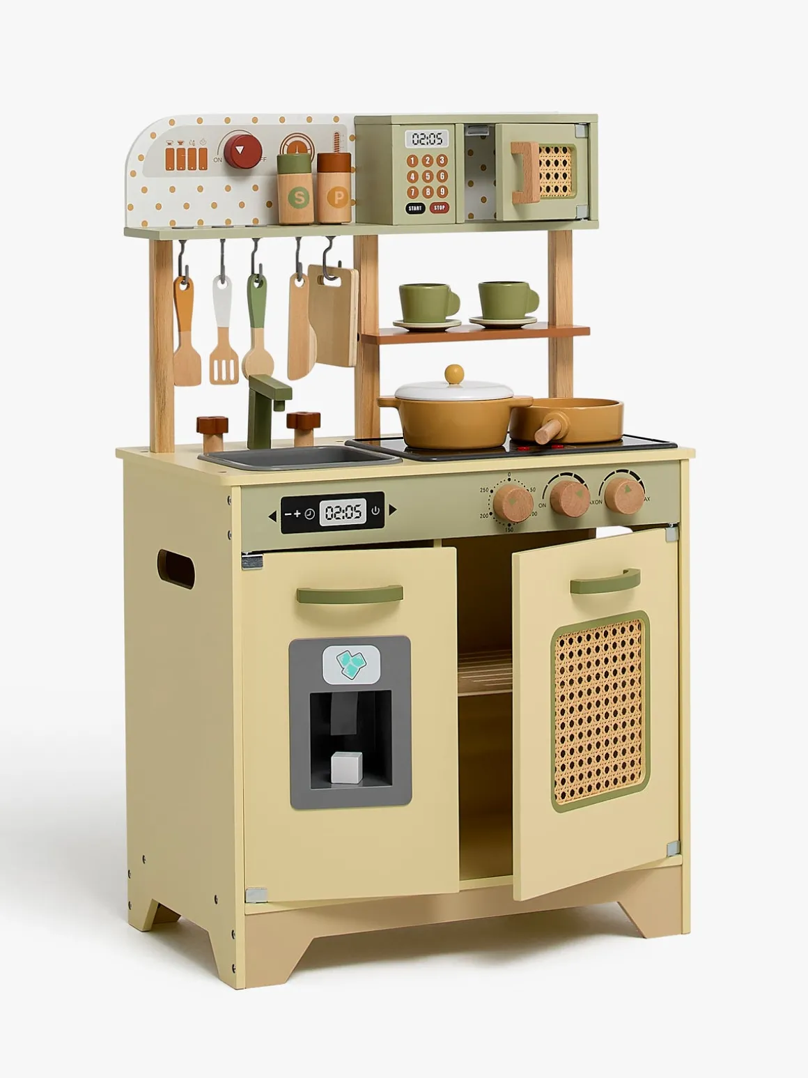 – Indeholder: 1 legekøkken, 1 kasserolle, 1 stegepande, 1 salatskål, 1 peberkværn, 5 køkkenredskaber, 2 tallerkener, 2 kopper.