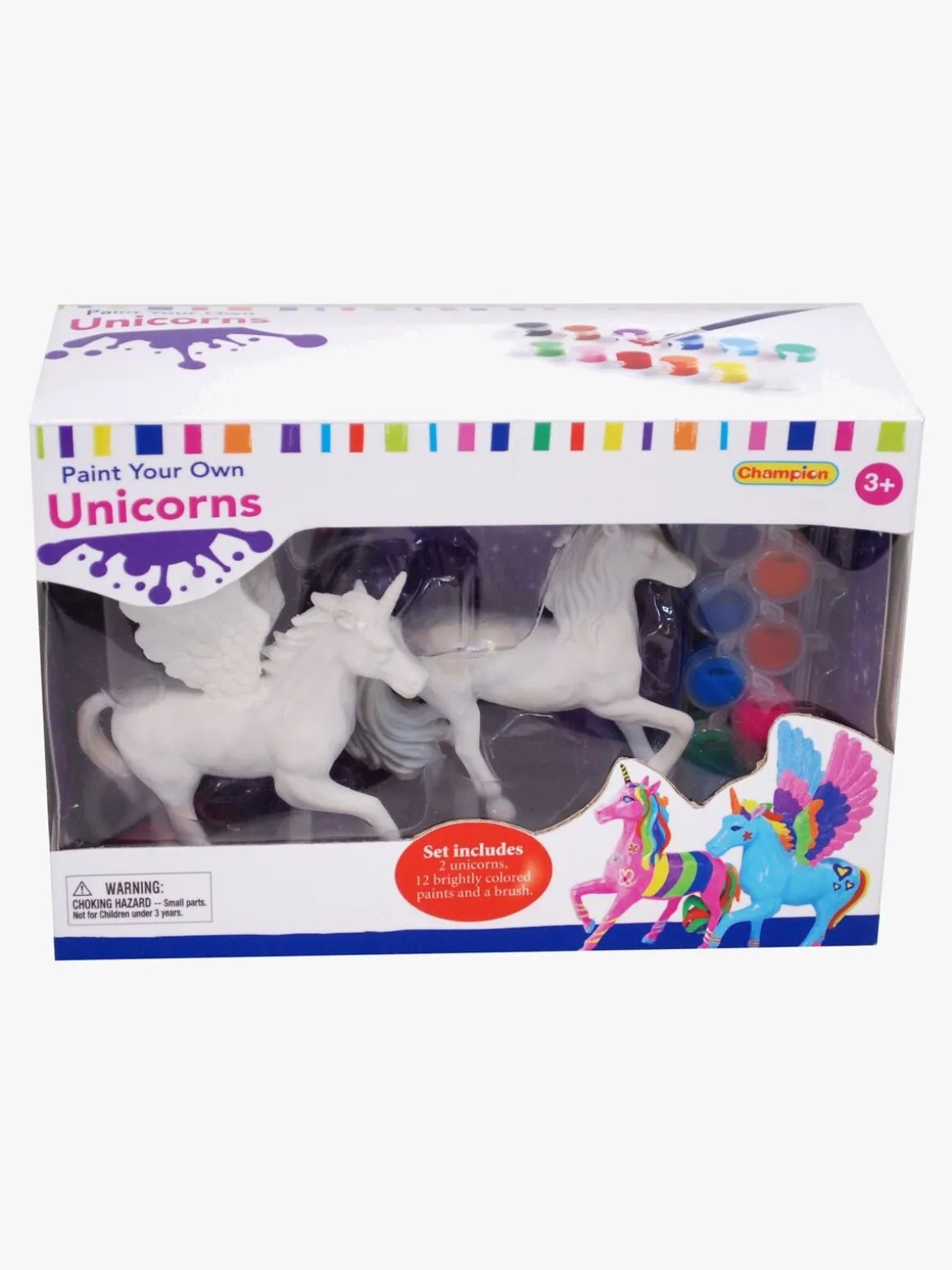 Multifarvet malesæt fra Alrico med to enhjørninger. Indeholder tolv farver og en pensel.