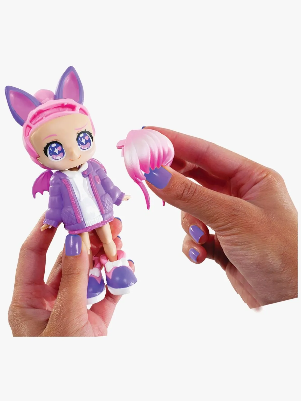 – Indeholder: 1 dukke, 4 ansigter, 2 frisurer, 2 outfits, 2 par sko.