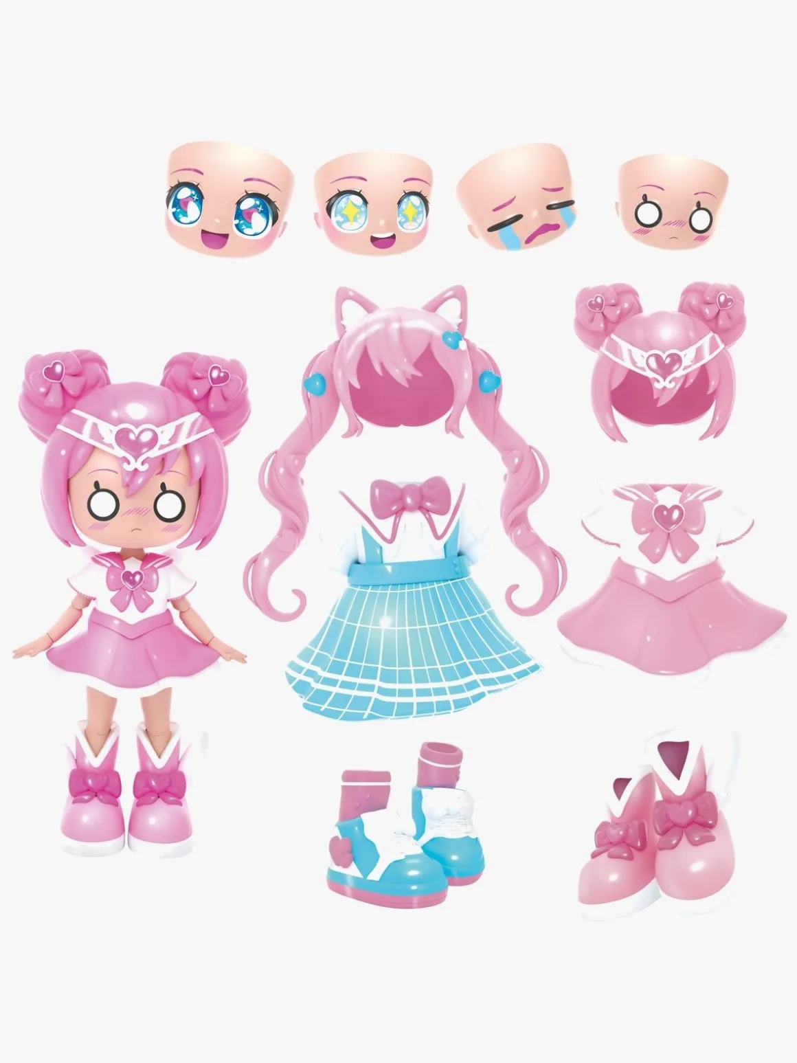 – Indeholder: 1 dukke, 4 ansigter, 2 frisurer, 2 outfits, 2 par sko.