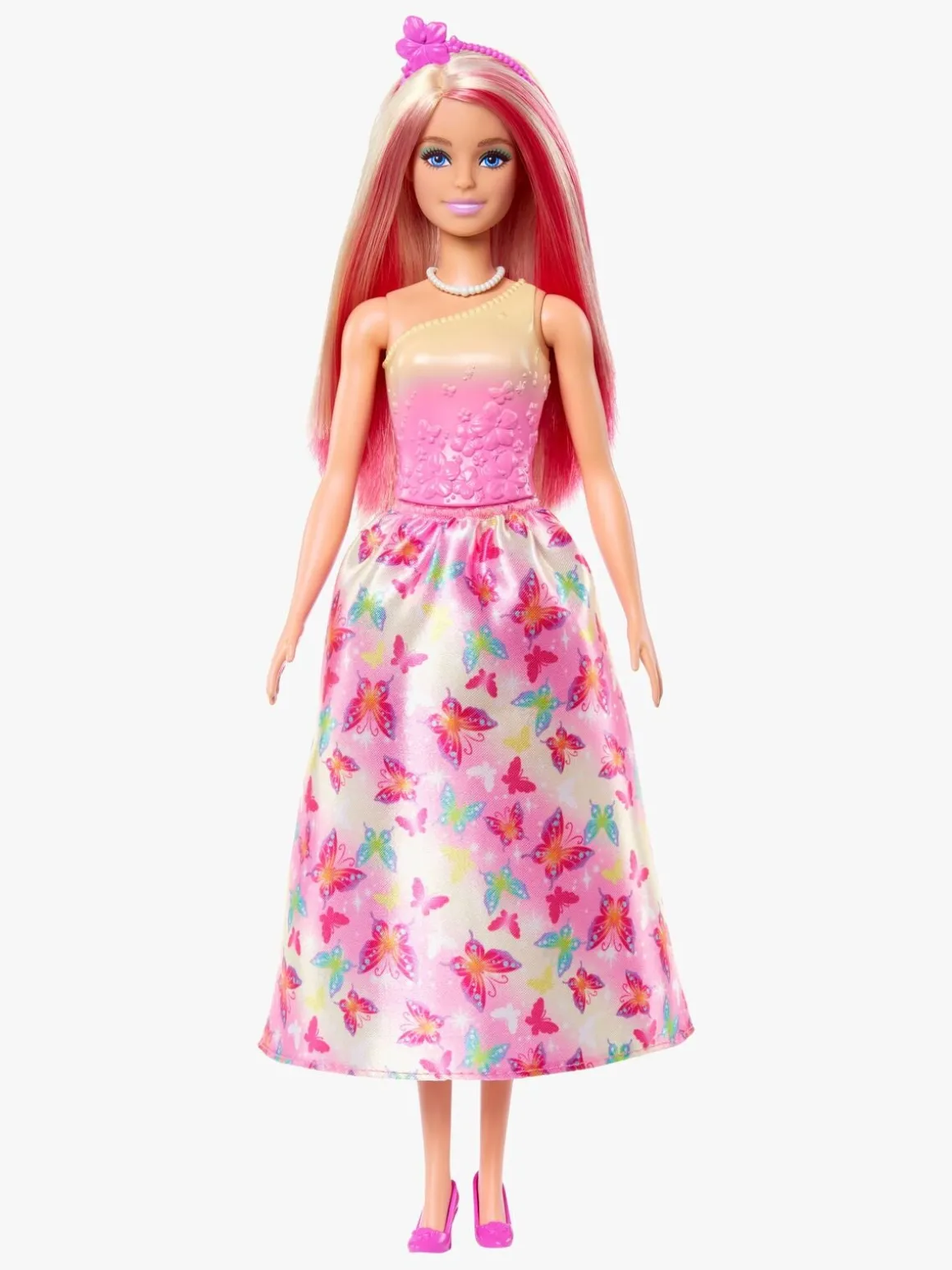 – Indeholder: 1 barbiedukke, 1 hårbånd, 1 outfit, 1 halskæde, 1 par sko.
