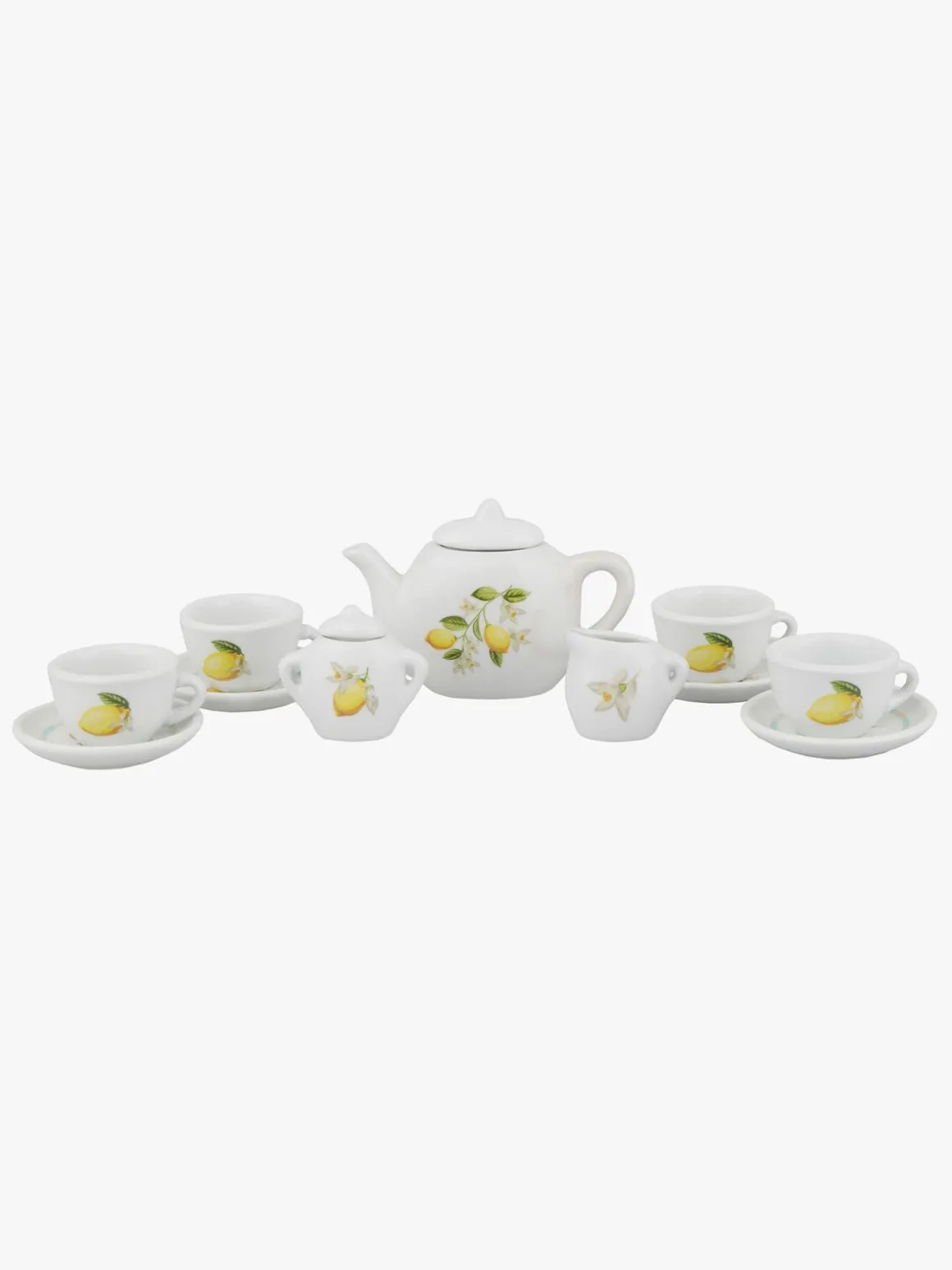 – Indeholder: 1 tepotte, 4 tekopper med en underkop, 1 mælkekande, 1 sukkerskål.