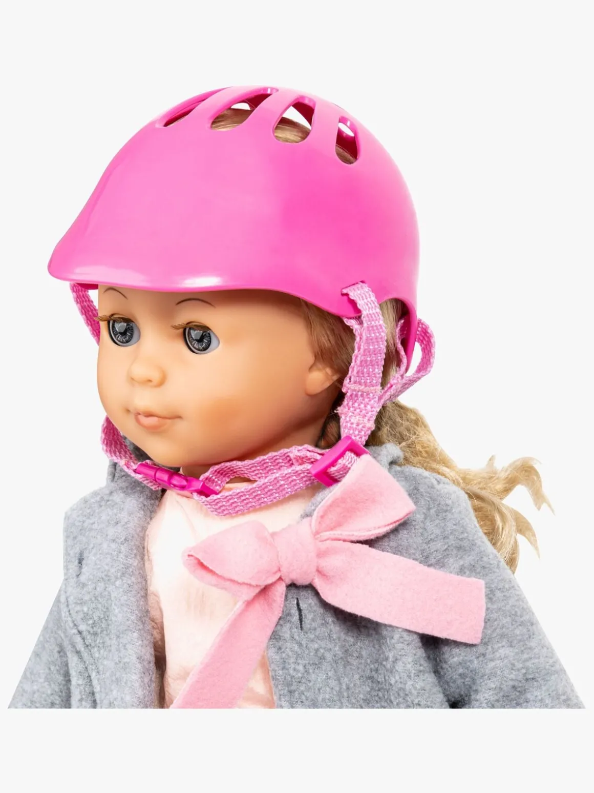 – Cykelhjelmen passer til dukker op til 43 cm.