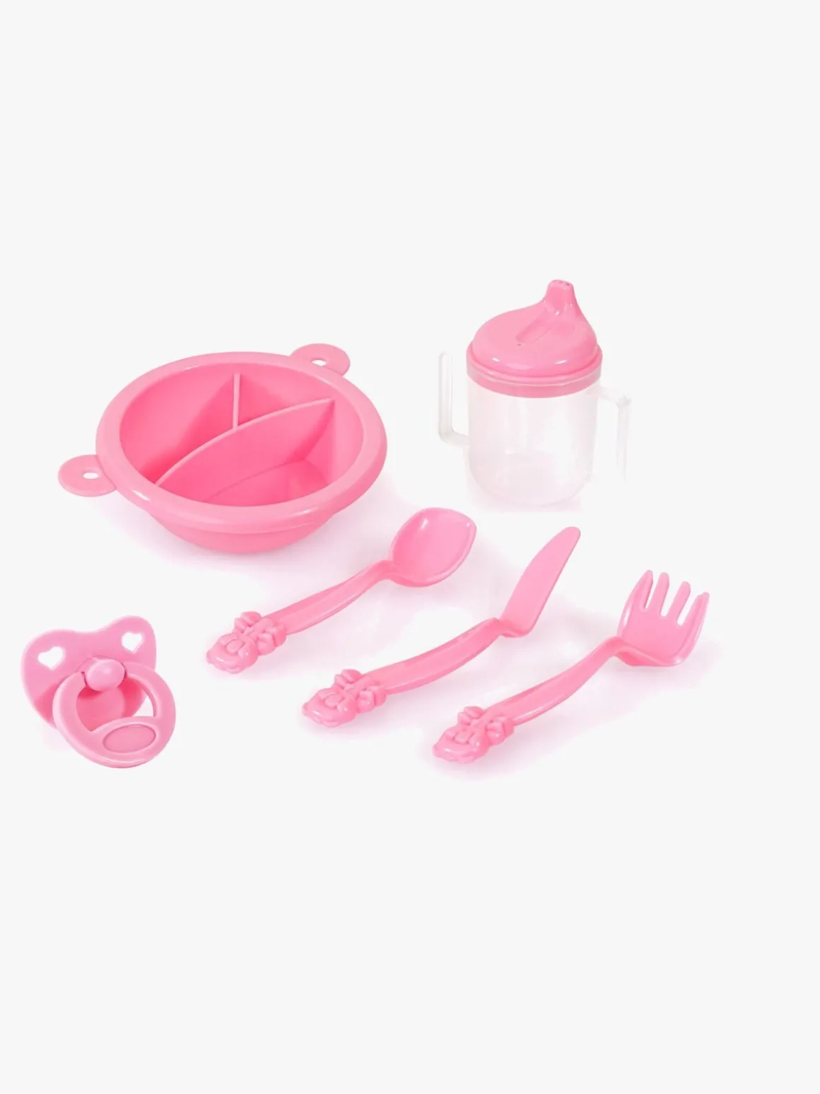 – Indeholder: 1 klapvogn, 1 skråstol, 1 pusletaske, 1 pusleunderlag, 1 hagesmæk, 1 tudekop, 1 tallerken, 3 bestik, 1 sut.