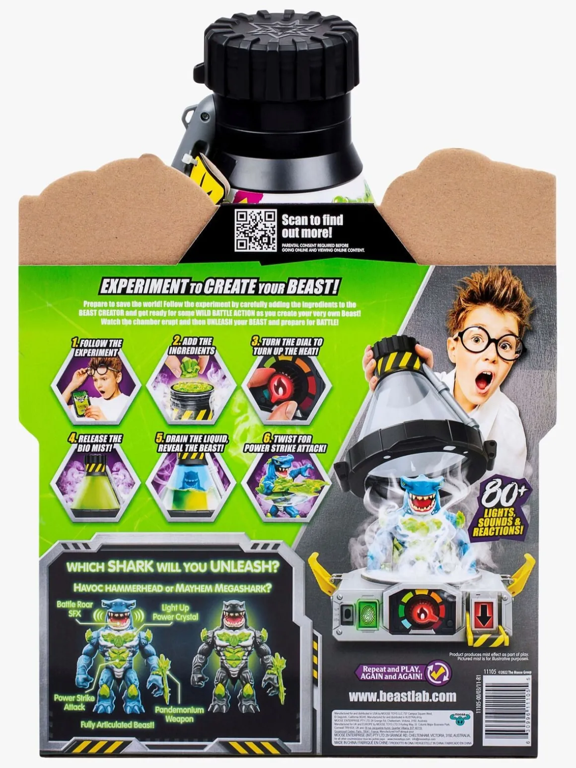 – Indeholder: 1 figur, 1 laboratoriebeholder, 13 ingredienser, 1 våben, 1 beholder, 1 brugsvejledning.