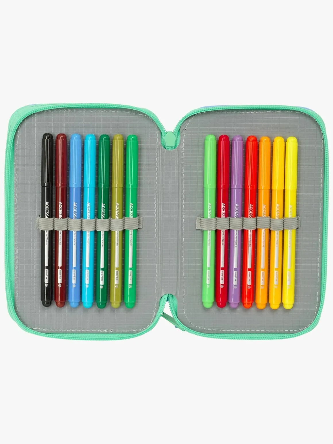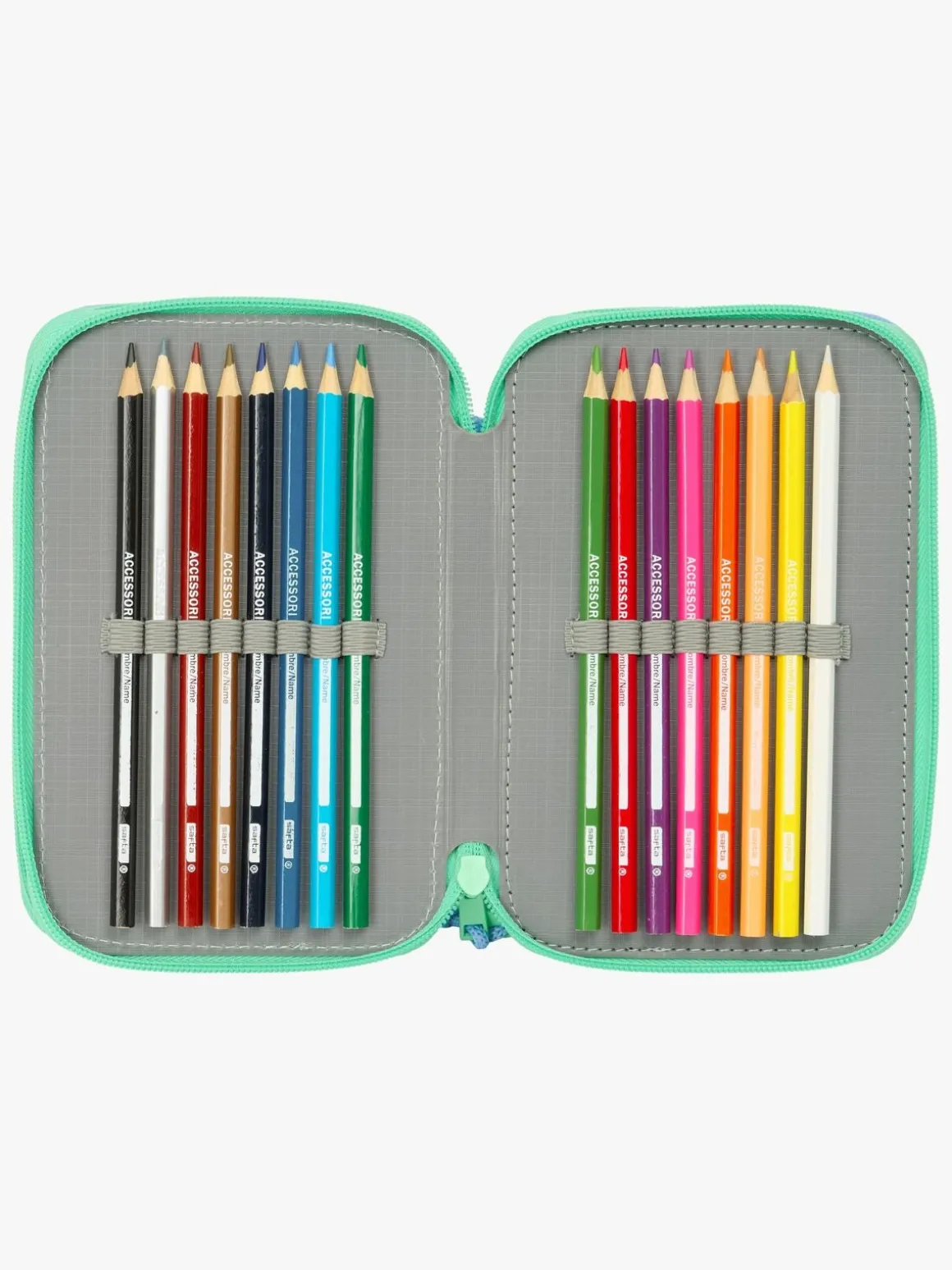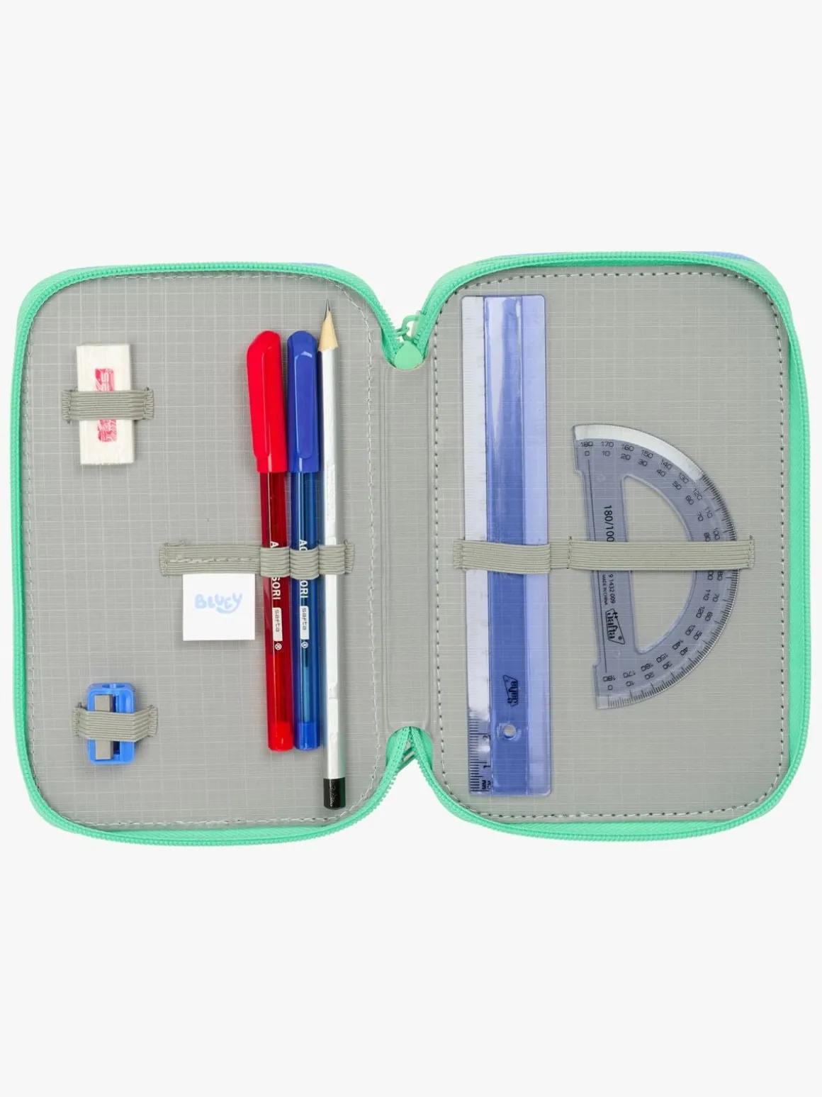 – Indeholder: 16 farveblyanter, 14 tusser, 2 kuglepenne, 2 linealer, 1 viskelæder, 1 blyant, 1 blyantspidser, 1 penalhus.