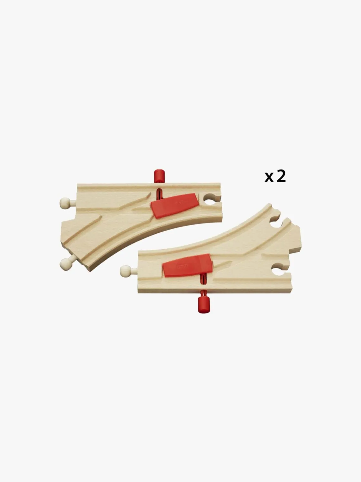 BRIO Mekaniske Sporskift er en 2-pack med ekstradele til din BRIO togbane. Sporskiftene kan vendes så de passer til både højre- og venstresving, som passer godt til batteridrevne lokomotiver.
