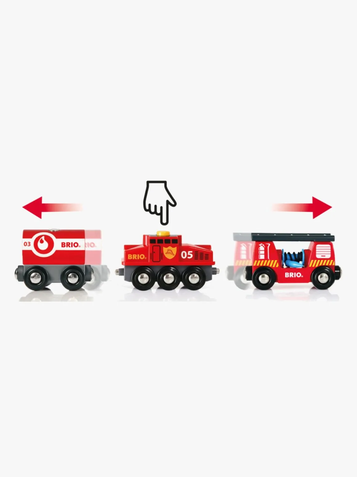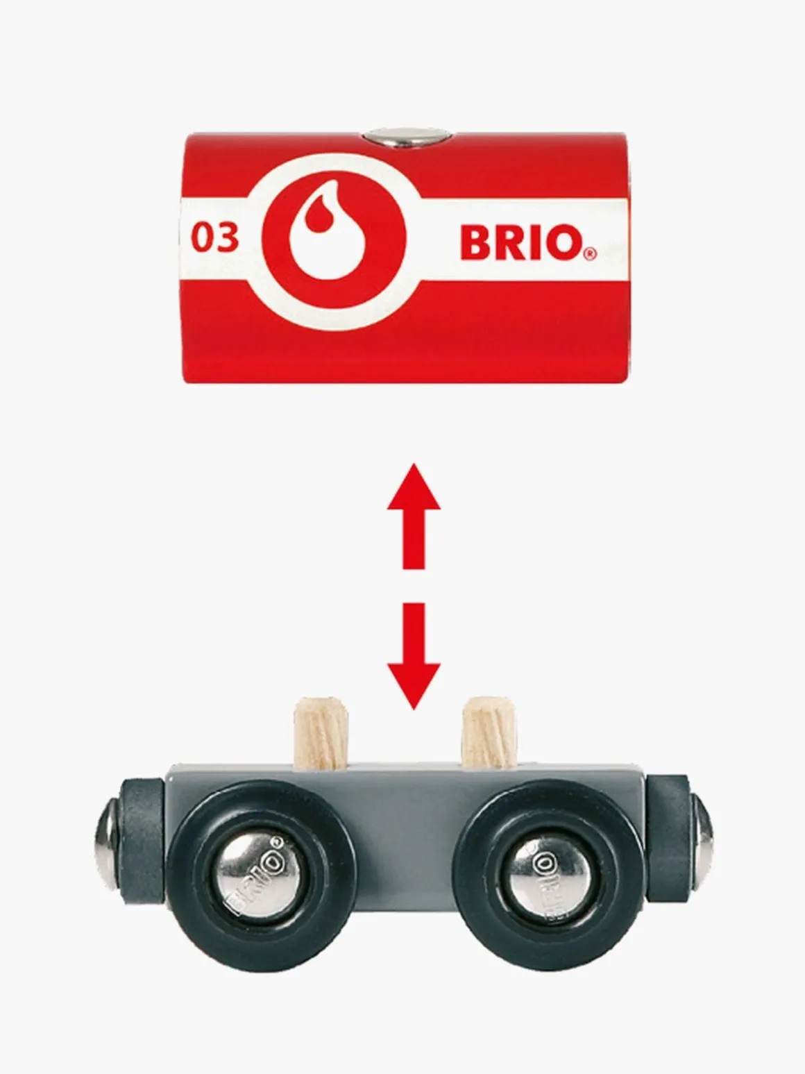 Når du trykker på den gule knap på lokomotivet kobles vognene af.