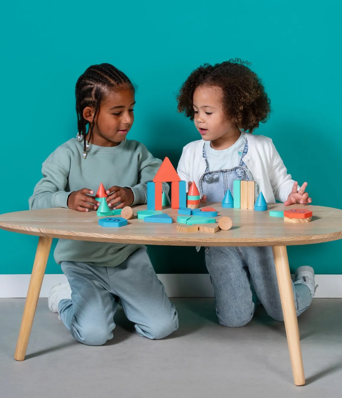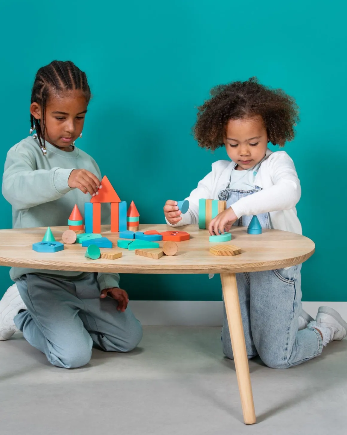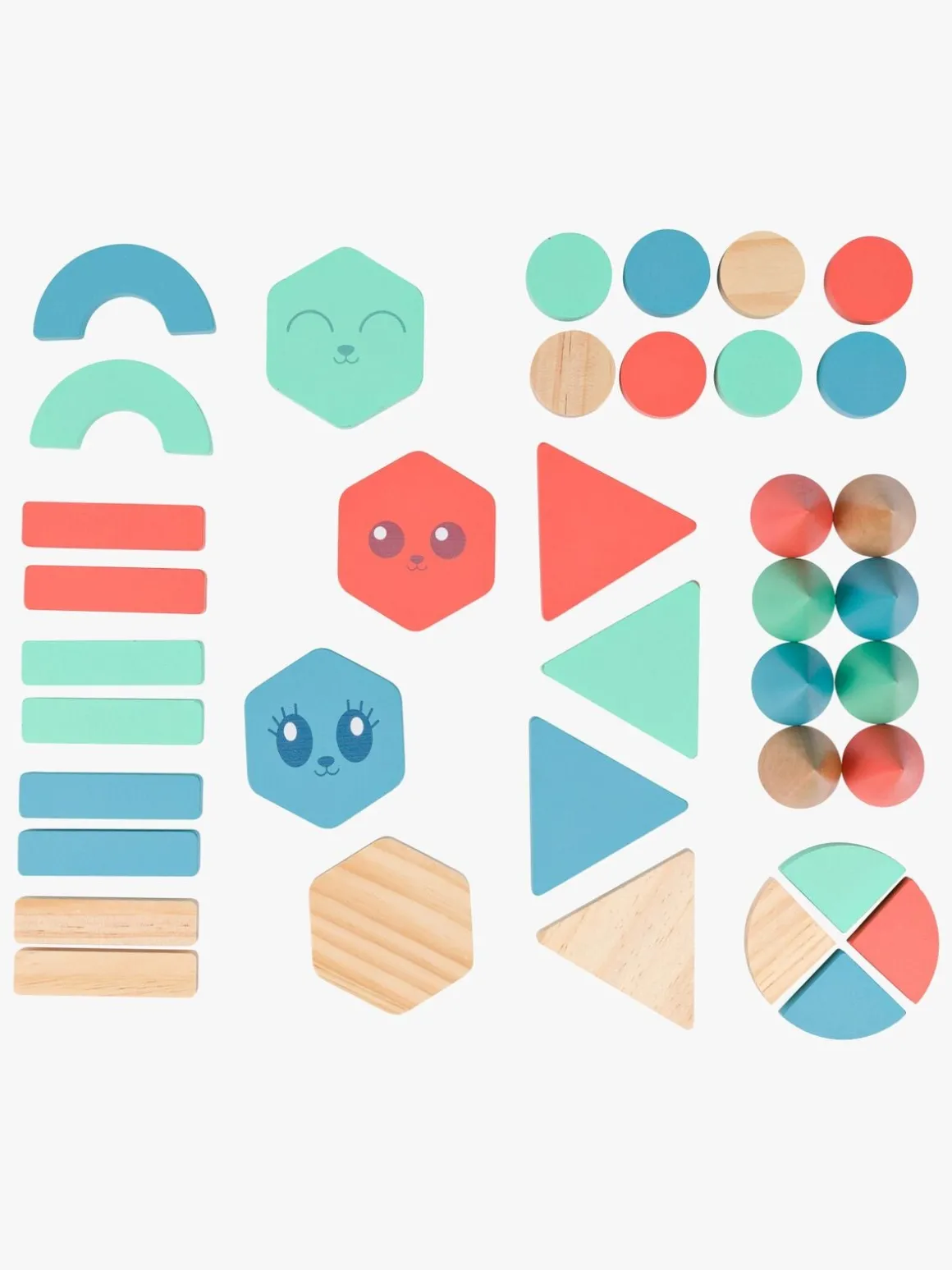 – Byggeklodser i forskellige former og farver.