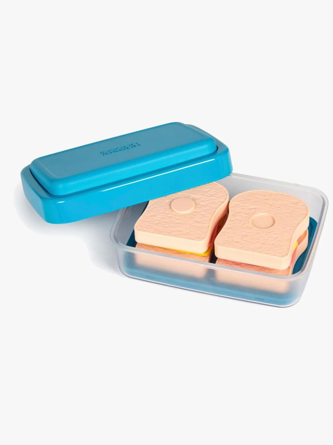 – Indeholder: 1 skærebræt, 1 legetøjskniv, 13 ingredienser, 1 madkasse.