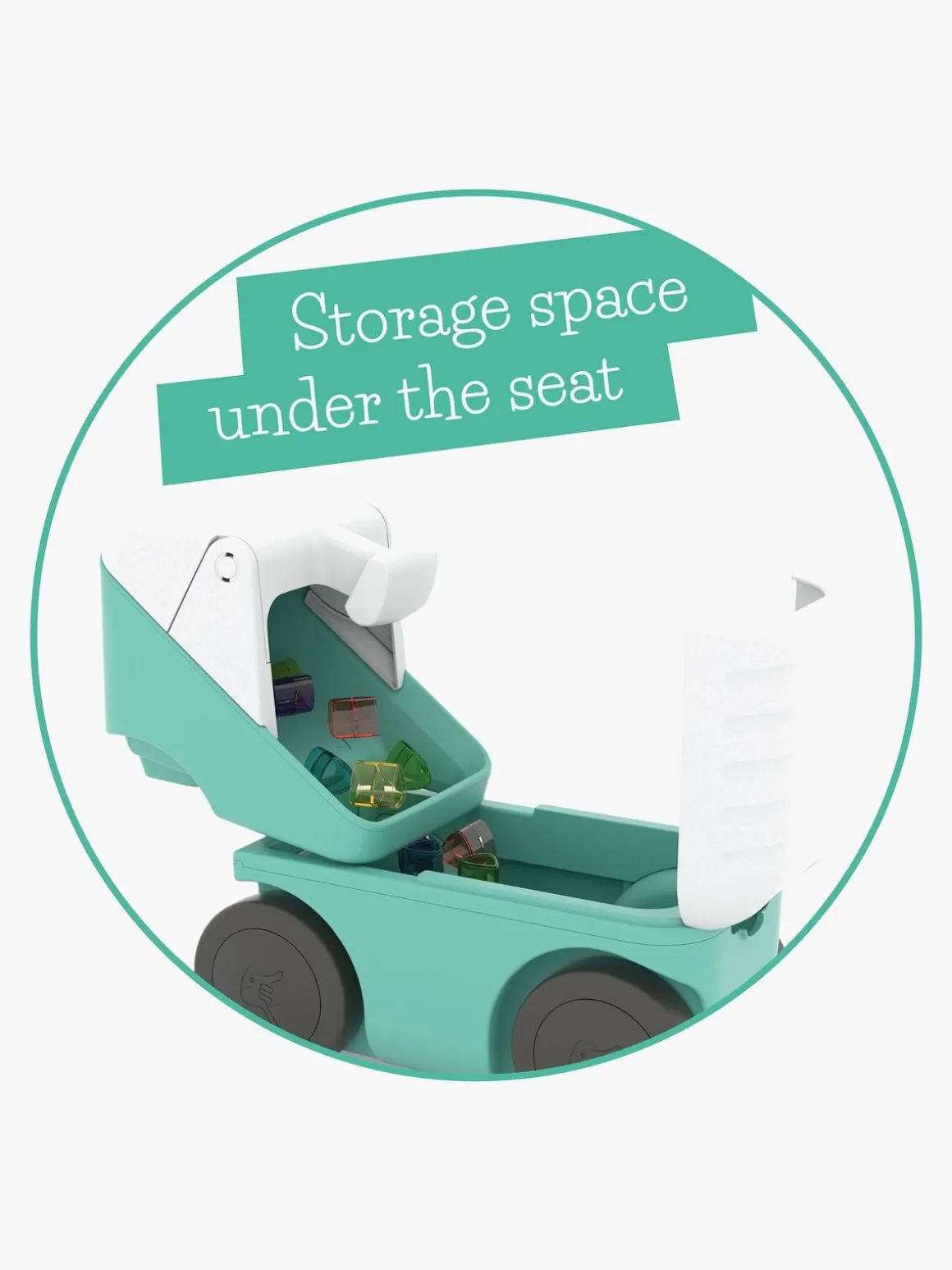 – Opbevaringsplads under sædet.