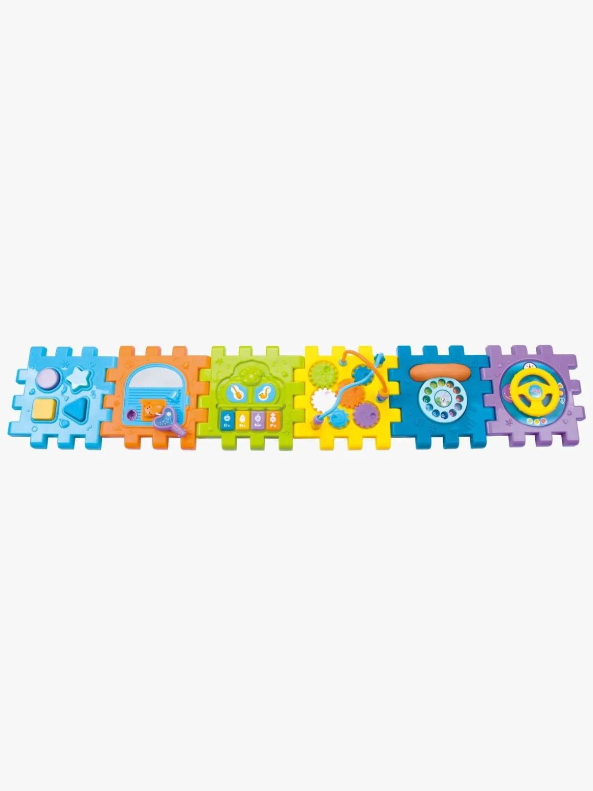 – Puttekasse, rat, klaver, drejetelefon, dør med spejl og tandhjul, der kan dreje.