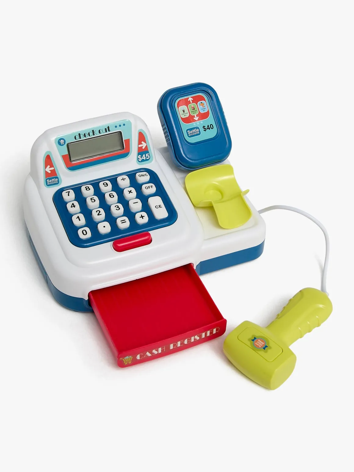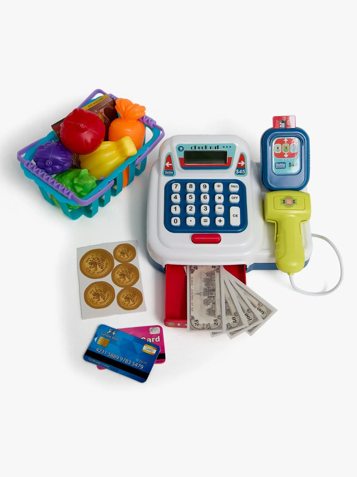 – Indeholder: Et kasseapparat, en kortlæser, mønter, sedler og en masse andet spændende tilbehør.
