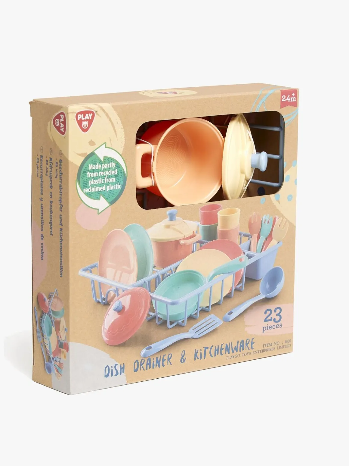 – Indeholder: 1 opvaskestativ, 4 kopper, 2 gryder, 4 tallerkener, 4 gafler, 4 knive, 2 køkkenredskaber.