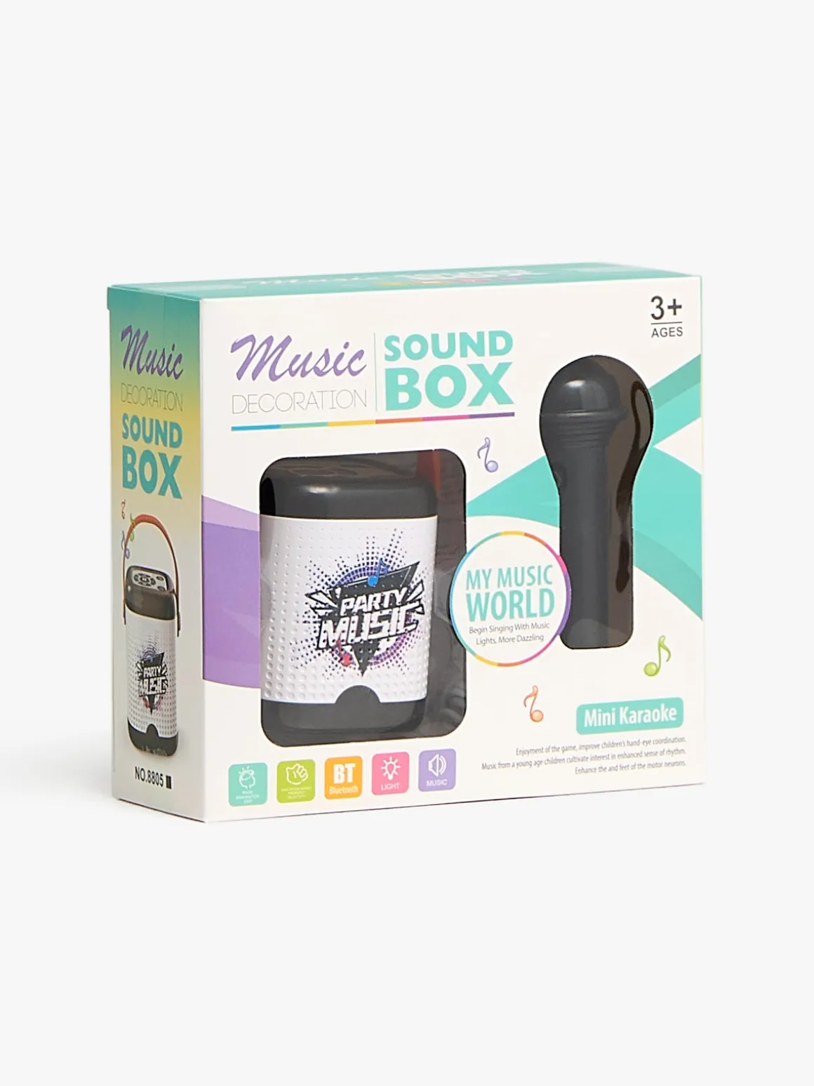 – Indeholder: 1 karaokemaskine, 1 mikrofon, 1 USB-opladerkabel.
