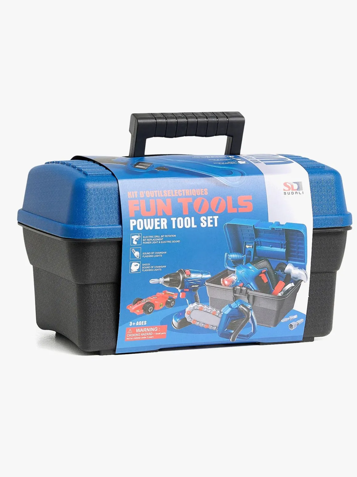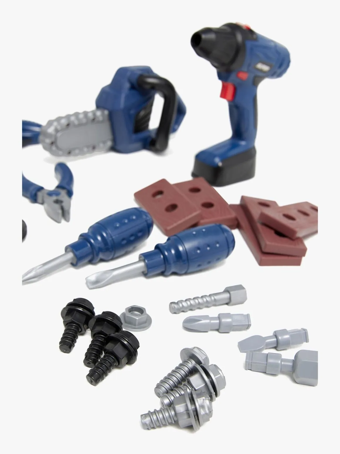 – Indeholder en stor værktøjskasse, værktøjsforklæde, elektrisk boremaskine, motorsav, hammer, skruer og meget andet tilbehør.