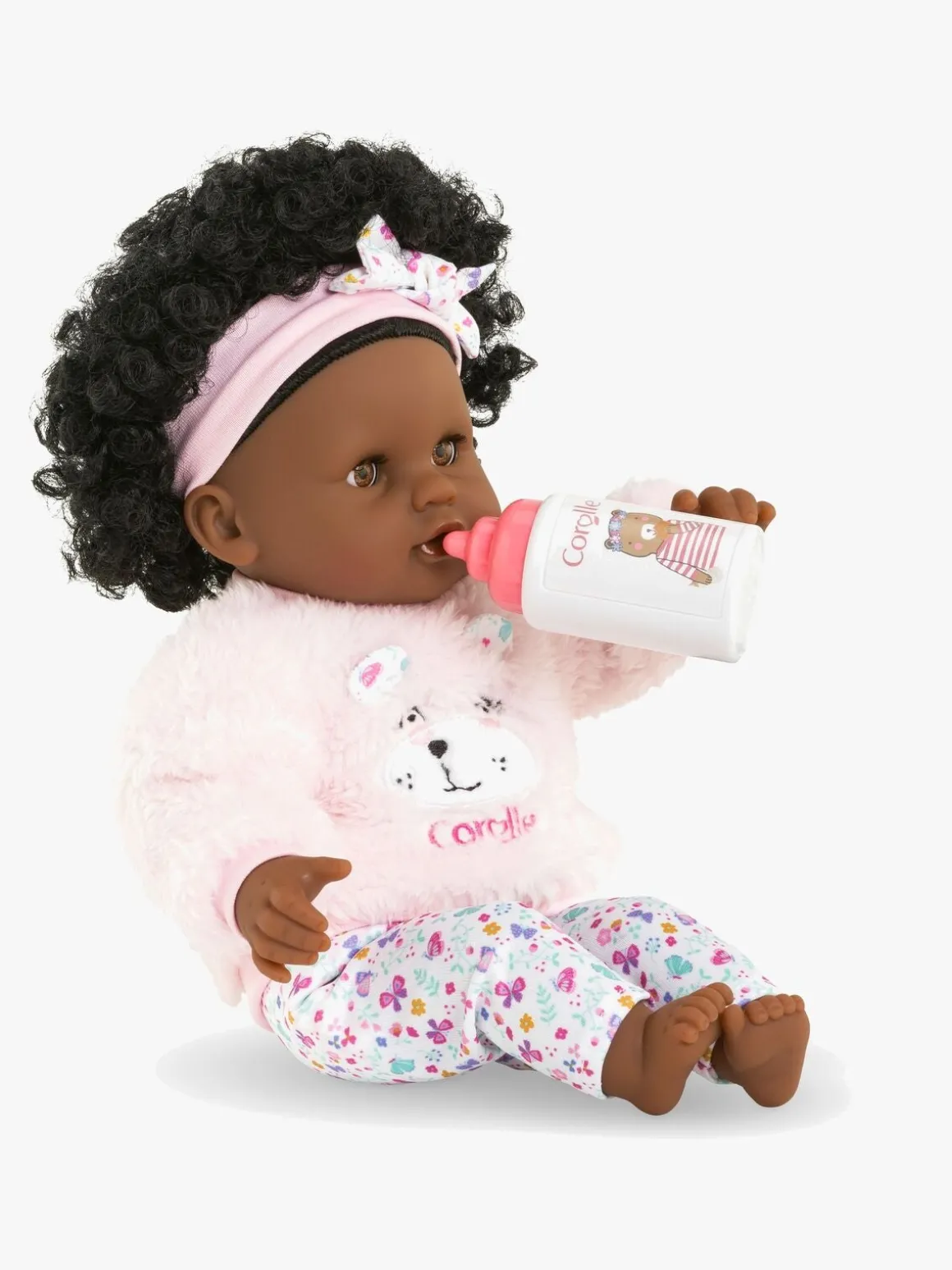 – Klædt i en hyggelig pink sweater, strømpebukser og matchende hårbånd.