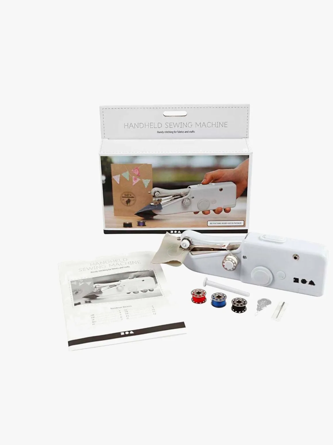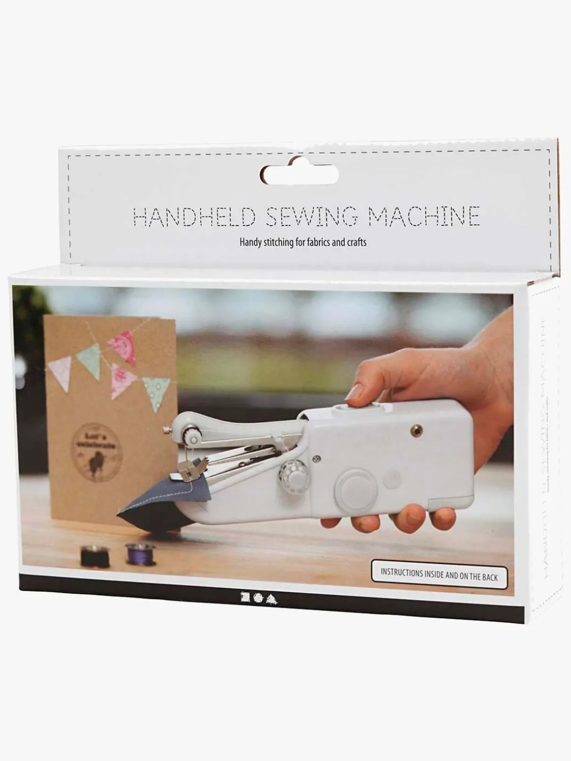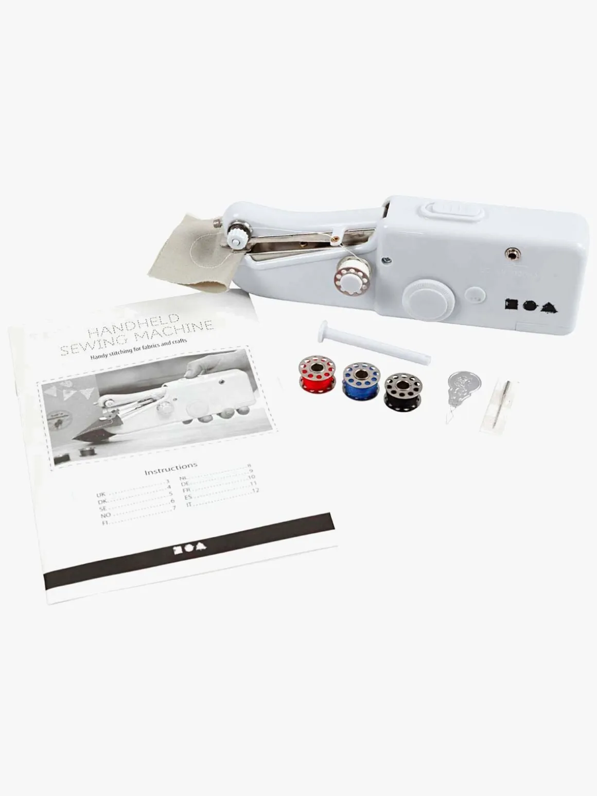 OBS: denne symaskine kan ikke erstatte en almindelig symaskine, da denne ikke syr med undertråd og også har andre begrænsninger. Er bedst egnet som supplement.
