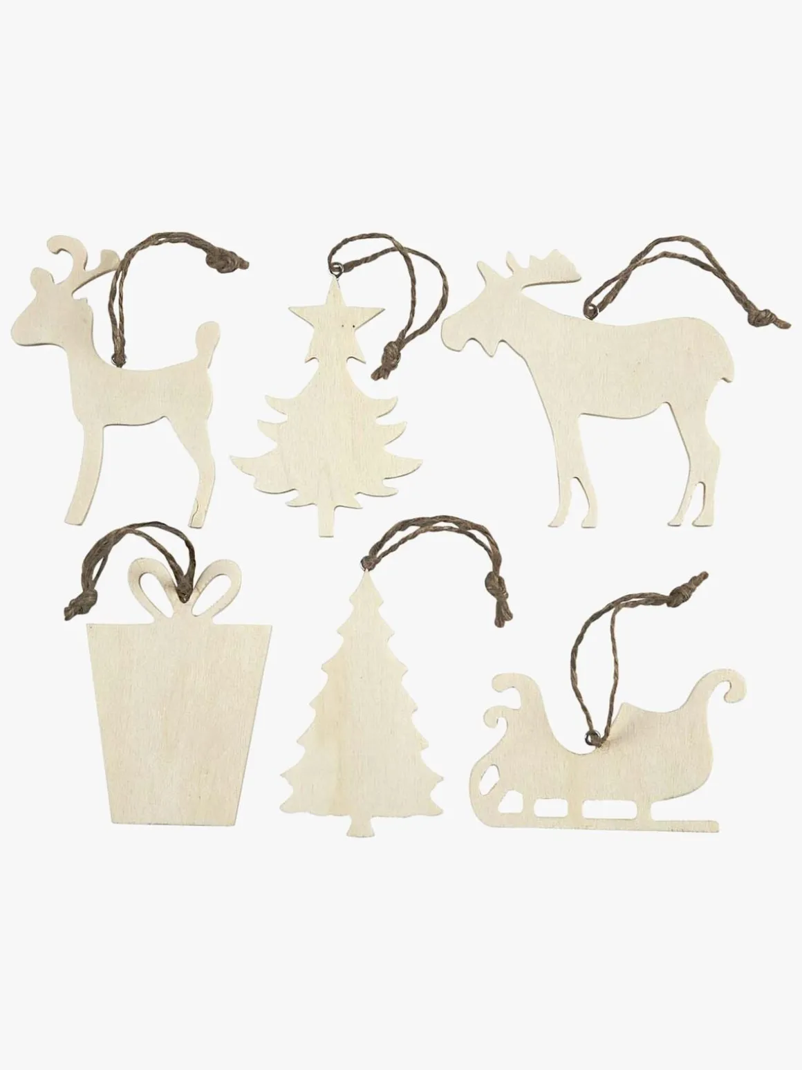 Lav din egen julepynt med dette kreasæt fra Creativ Company. Du får 6 forskellige motiver i lyst træ, som du kan dekorere med farve, glitter, filt eller andet I har derhjemme. Pynt op med dem på juletræet eller i vinduet. Perfekt juleaktivitet for hele familien.