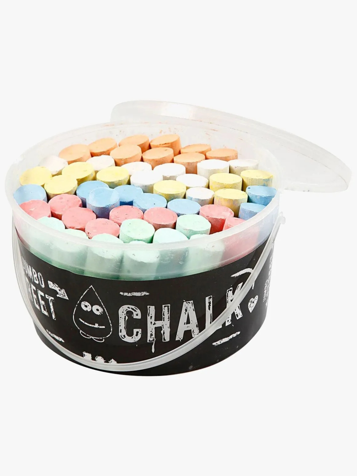 Sæt med tykke kridt fra Creativ Company. De er korte og har forskellige farver. De leveres i en plastikbøtte. Perfekte til den lille kunstner, der vil sætte lidt farve på tilværelsen, skabe og male flotte kunstværker. Kun fantasien sætter grænser.