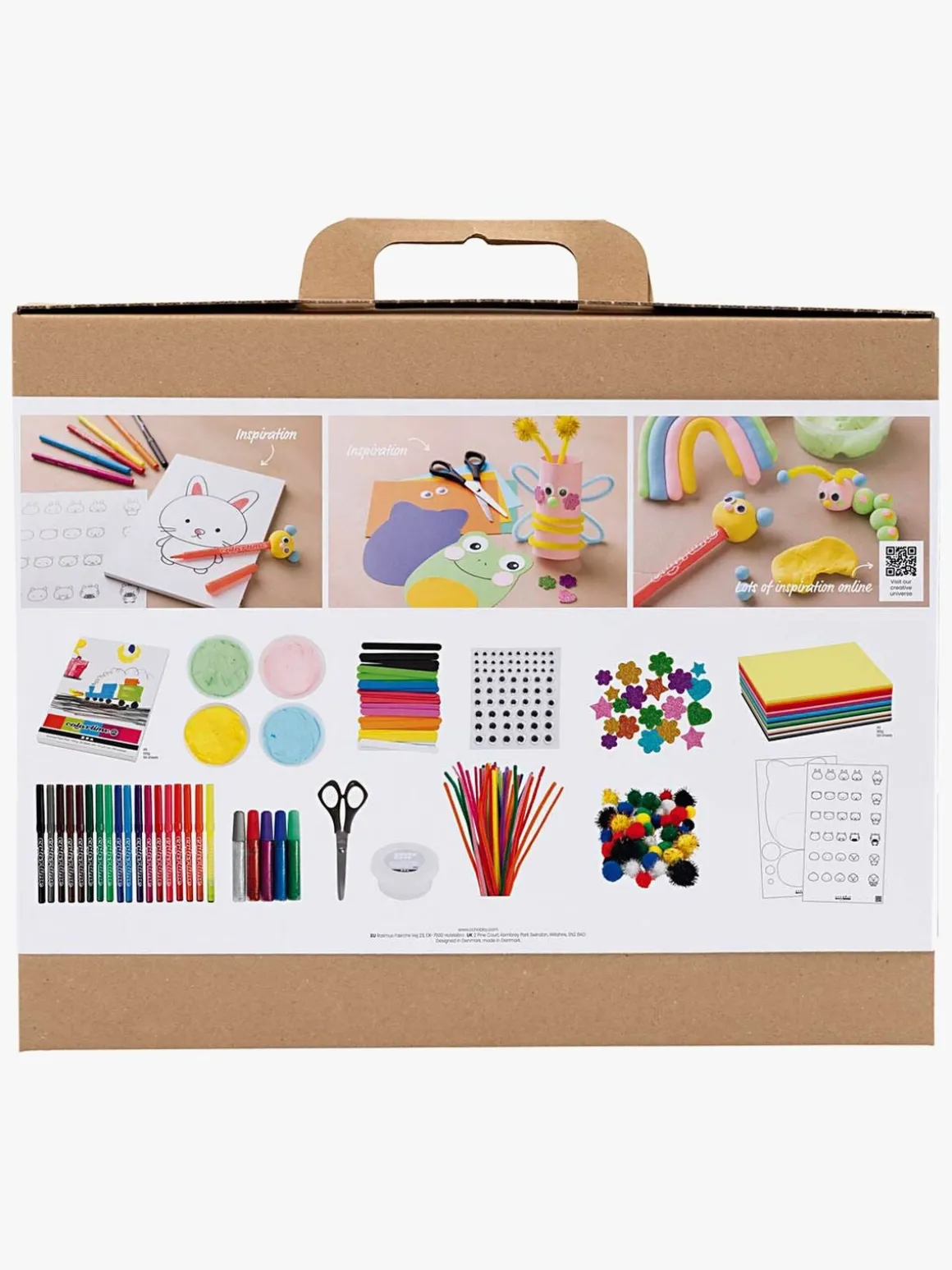 – Indeholder: Silk Clay modelleringsler, karton, markører, glitterlim, garnkvaster, chenille, pyntegummi, øjne, saks og lim.