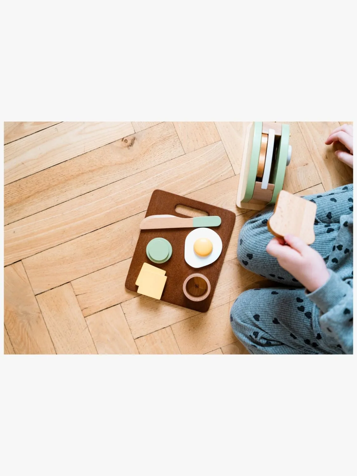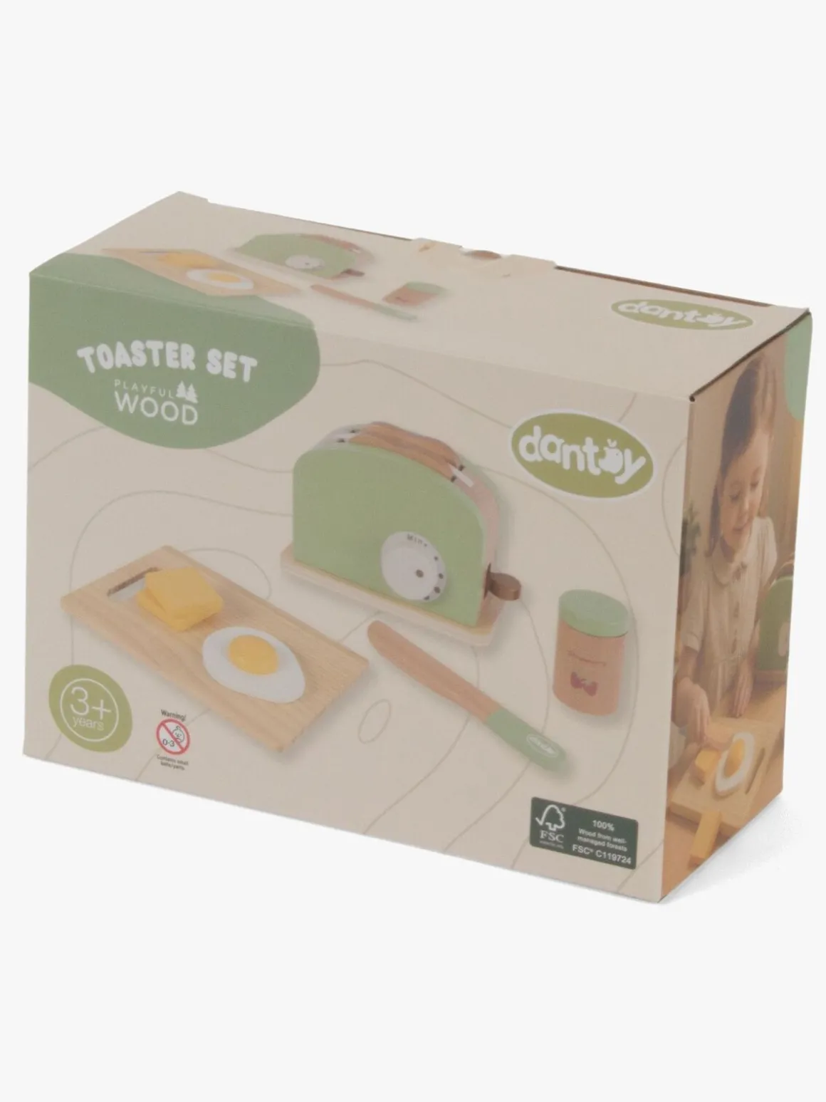 – Indeholder: 1 brødrister i træ, 2 brødskiver, 1 trækniv, 1 skærebræt, 1 sæt med toppings.