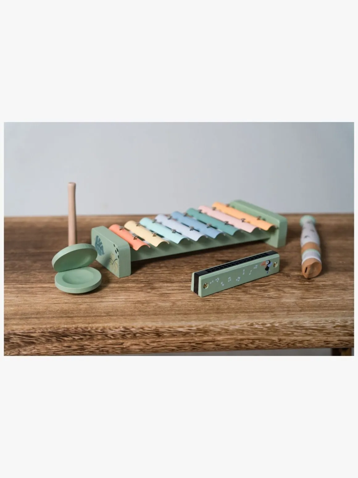 – Indeholder: 1 xylofon, 1 mundharmonika, 1 fløjte, 1 Kastagnetter.