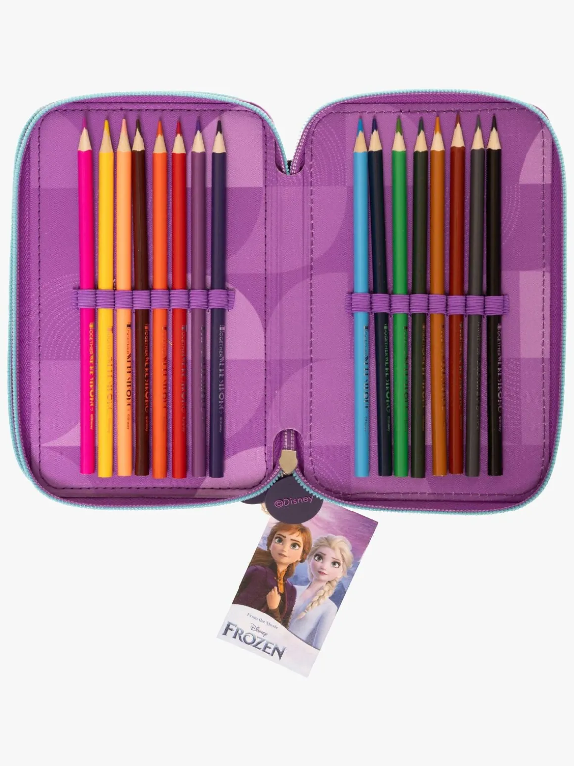 – Indeholder: 1 penalhus, 16 farveblyanter, 1 notesblok, 1 viskelæder, 1 blyantspidser, 1 lineal, 2 blyanter.