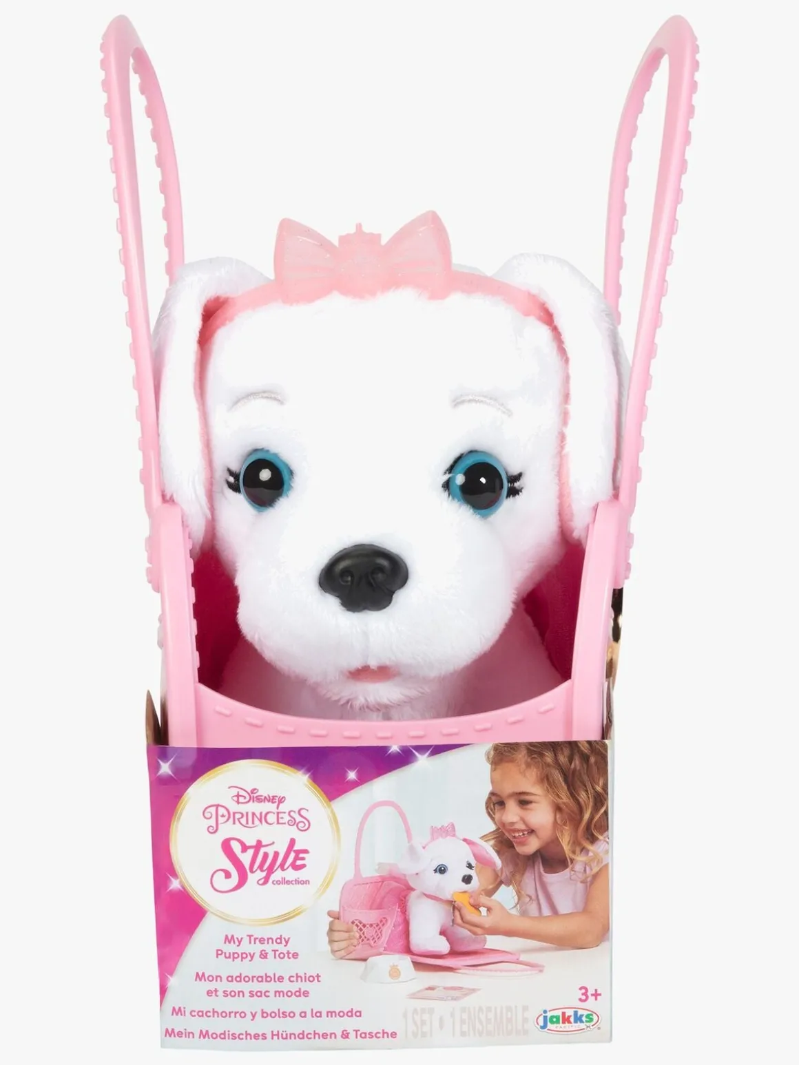 – Indeholder: 1 hyggelig hundehvalp, 1 taske med en sammenklappelig side, 1 pink tutu, 1 pænt halsbånd, 1 tiara med en smuk sløjfe, 1 gnaveben, 1 skål, 1 adoptionsbevis.