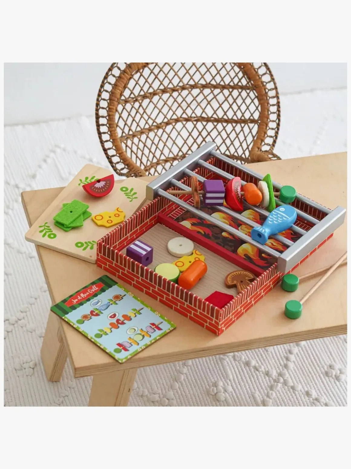 – Indeholder: 1 grillrist, 1 skærebræt, 1 menukort, 3 grillspyd, 20 ingredienser.