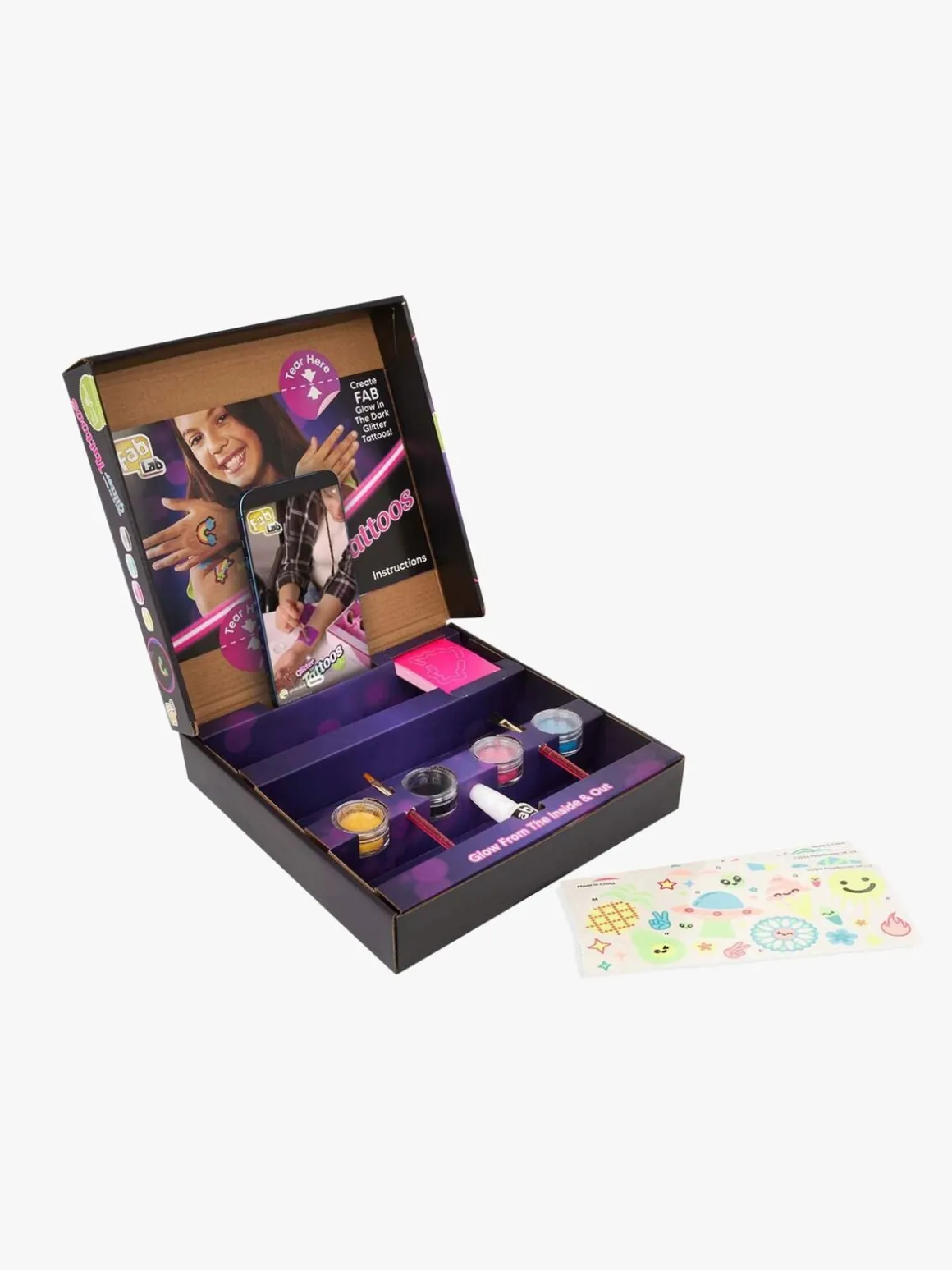 – Glittertatoveringer med selvlysende effekt.