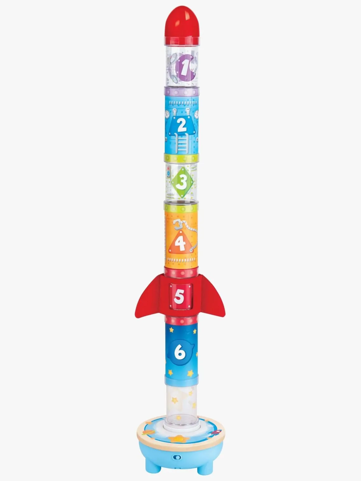Tag stableriet til et helt nyt niveau med det imponerende stabeltårn fra Hape. Placér bolden i basen, sæt et tomt rør i og start blæseren, stabl derefter de andre rør, og se hvordan bolden flyver til tops! Dæk toppen med låget, så bolden falder ned. Hvem kan bygge det højeste tårn?