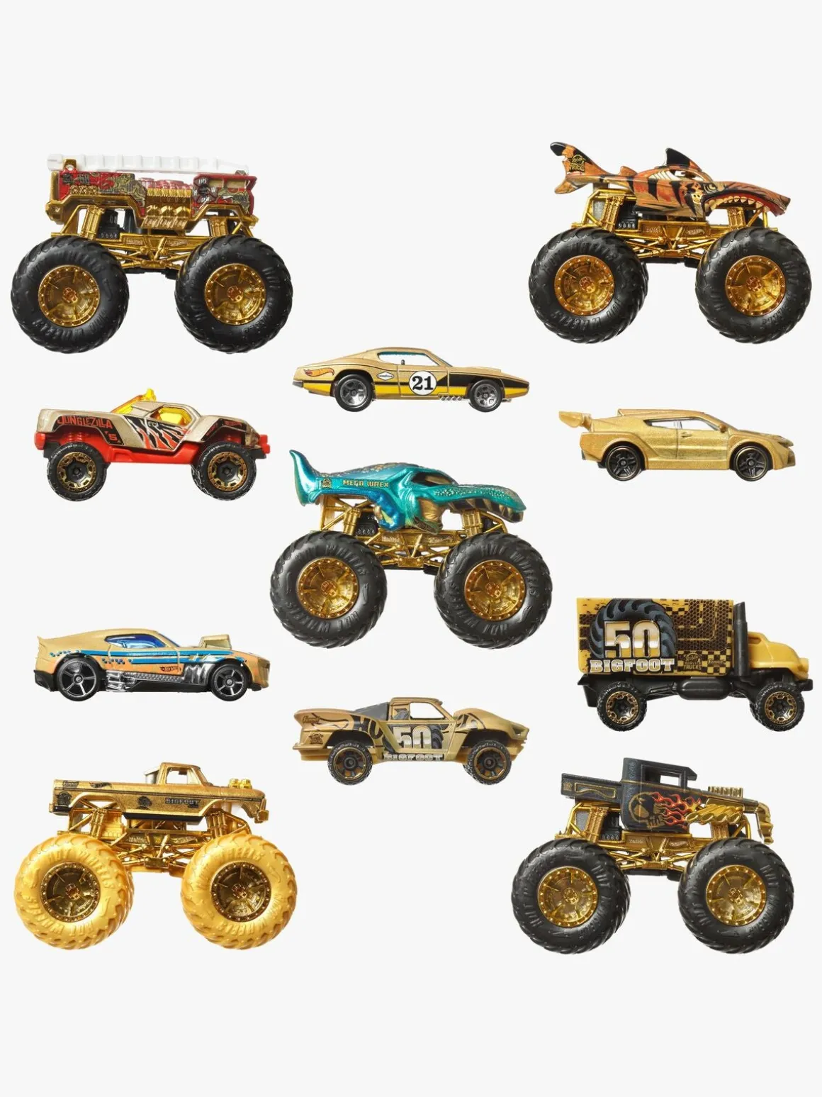 – Indeholder: 5 monster trucks, 6 Hot Wheels-biler.
