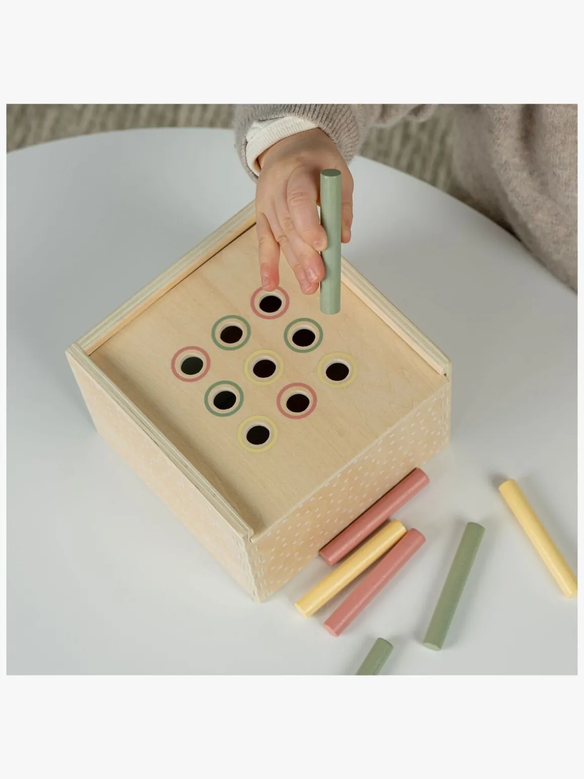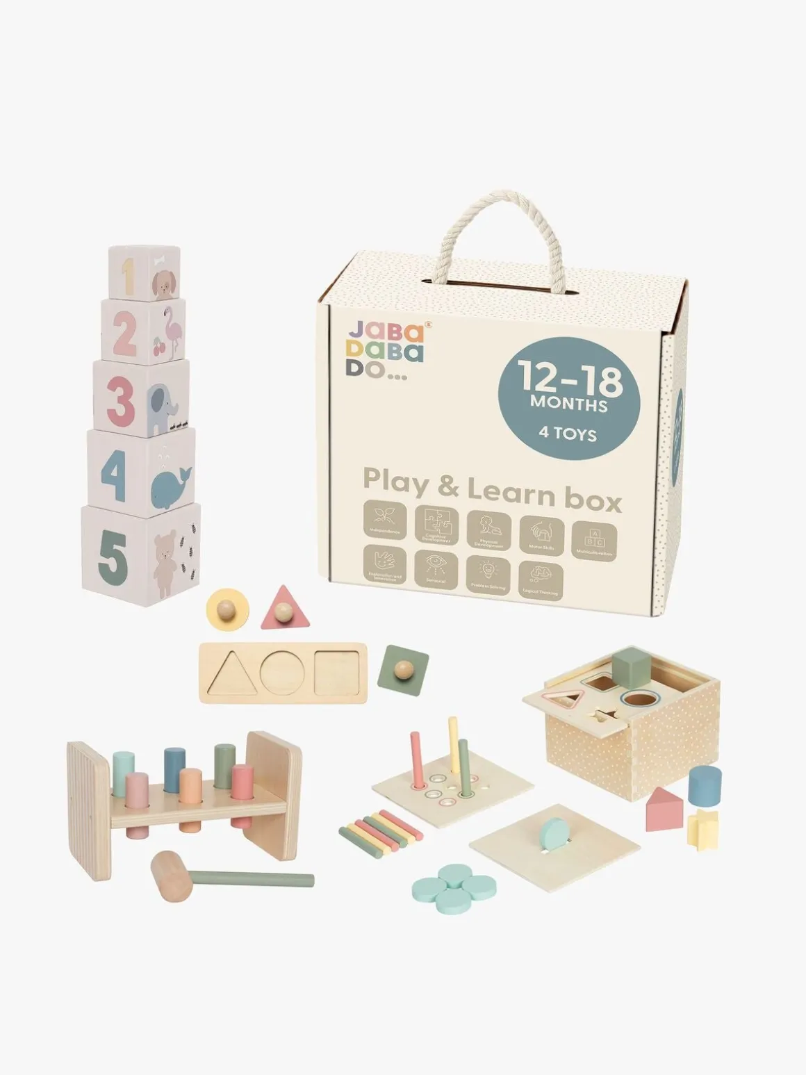 – Indeholder: 5 stableklodser, 1 puslespil, 1 hammerbræt, 1 aktivitetskasse.