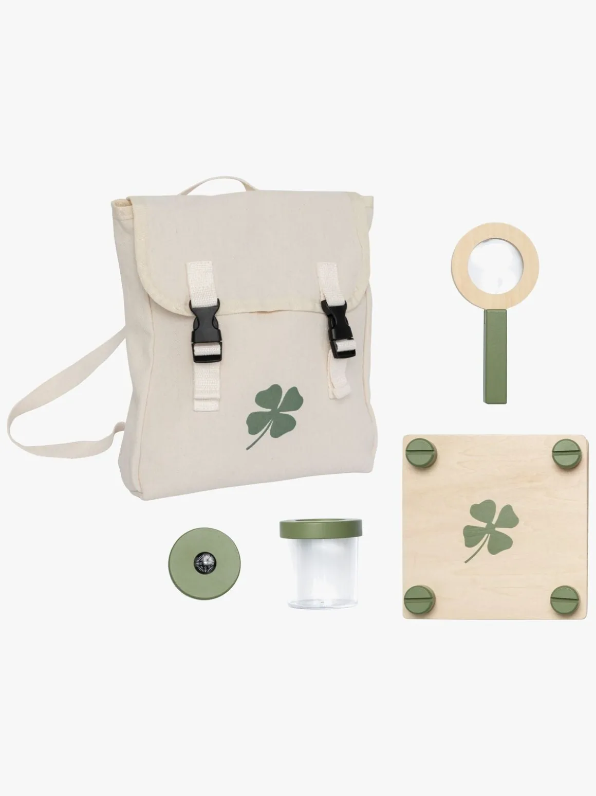– Indeholder: 1 rygsæk, 1 kompas, 1 insektglas, 1 observationsbakke, 1 forstørrelsesglas.