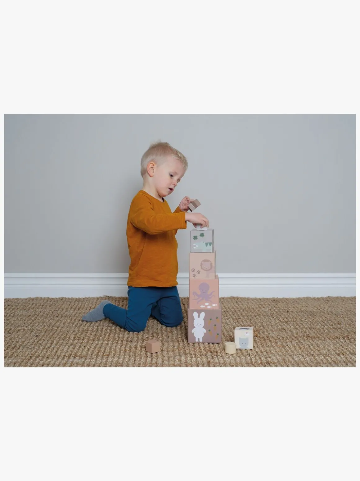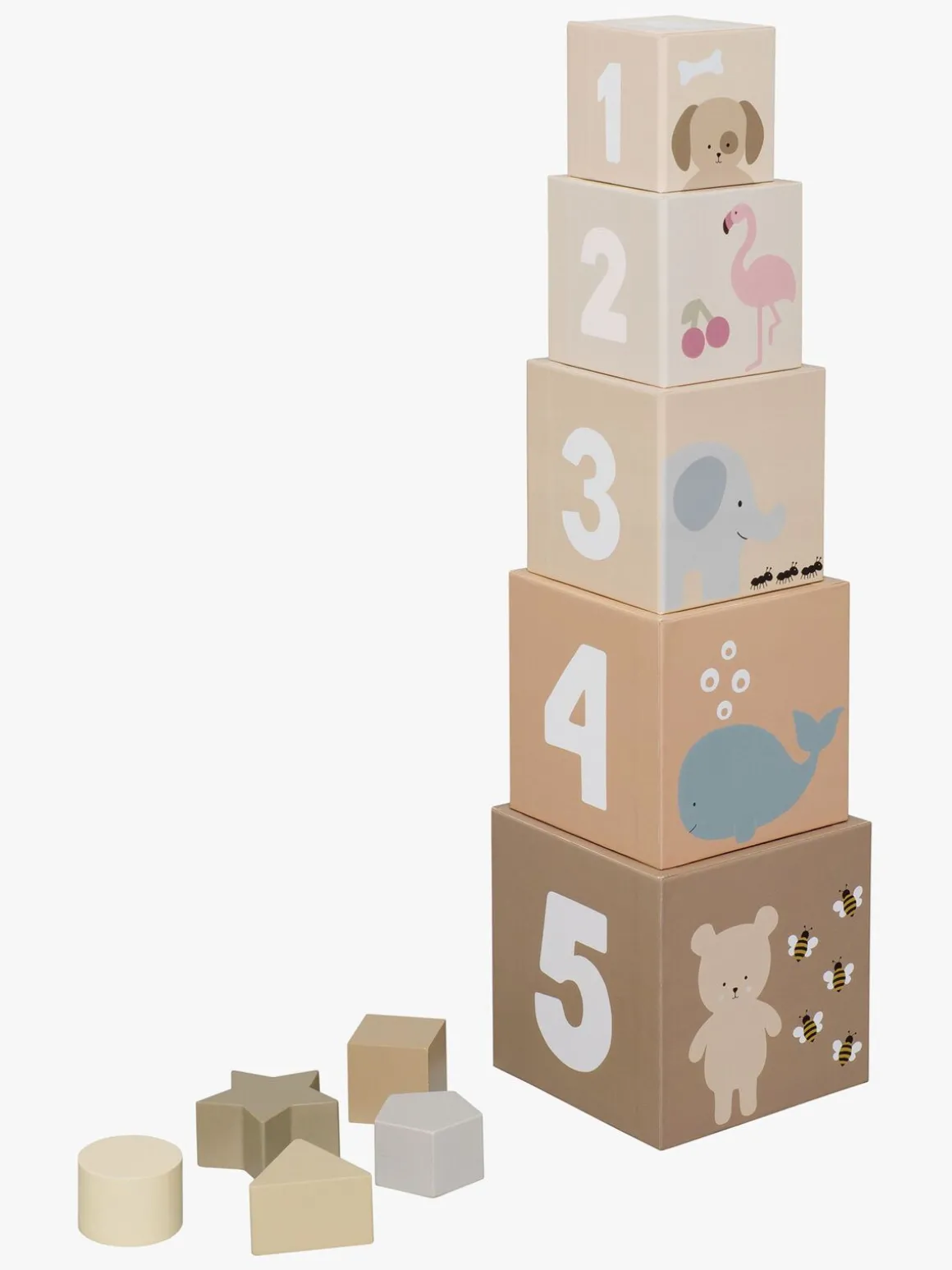 – 5 stabelbare klodser med søde dyremotiver.