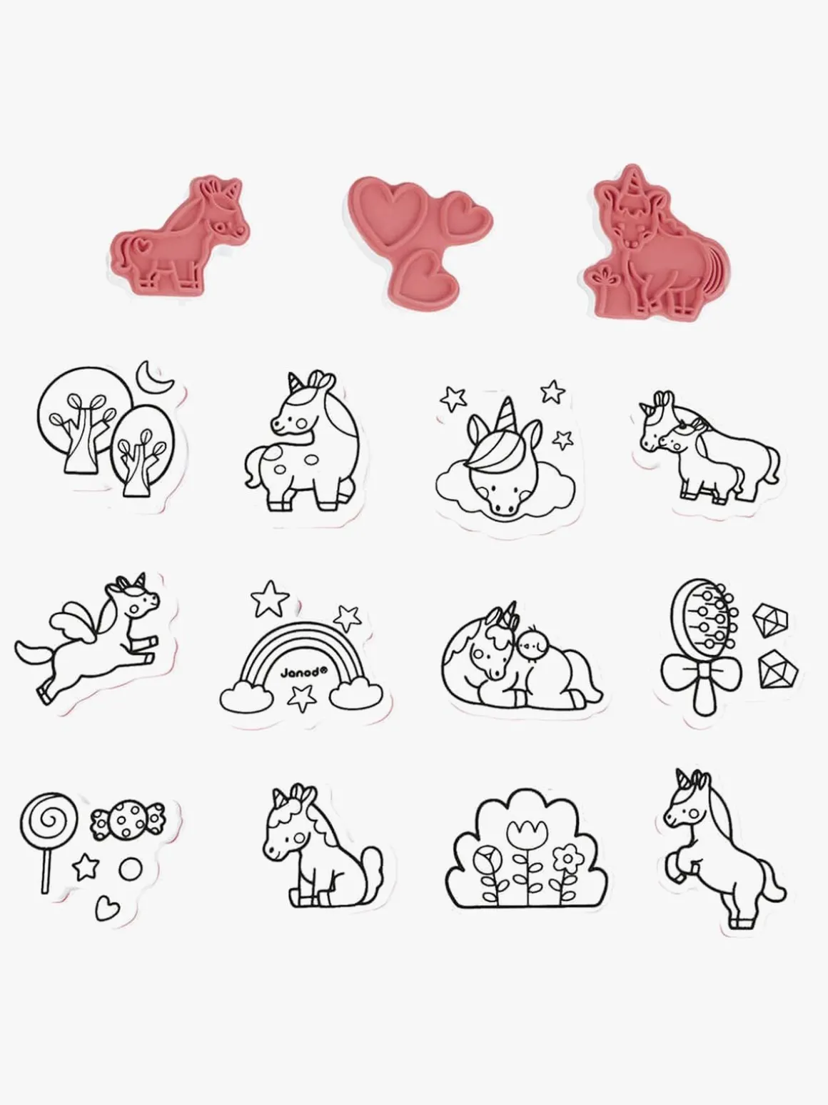 – Indeholder: 15 stempler, 1 blækpude.