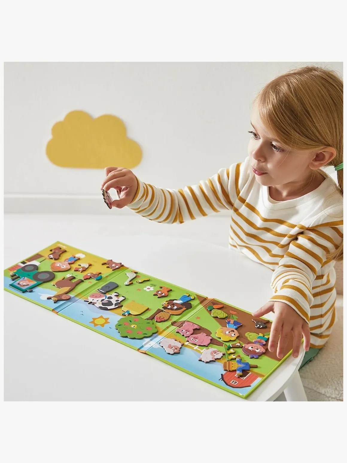 – Indeholder: 1 illustreret og magnetisk baggrund, 30 magnetiske dele.