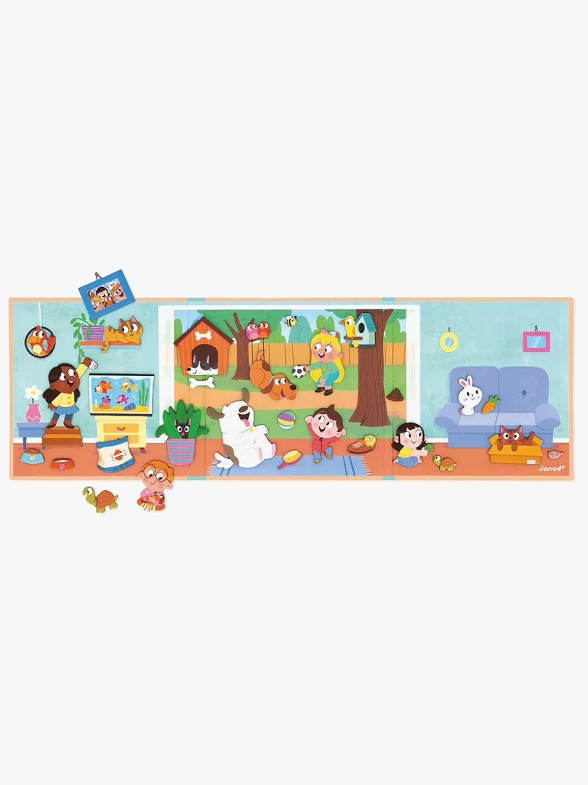 – Indeholder: 1 illustreret og magnetisk baggrund, 30 magnetiske dele.
