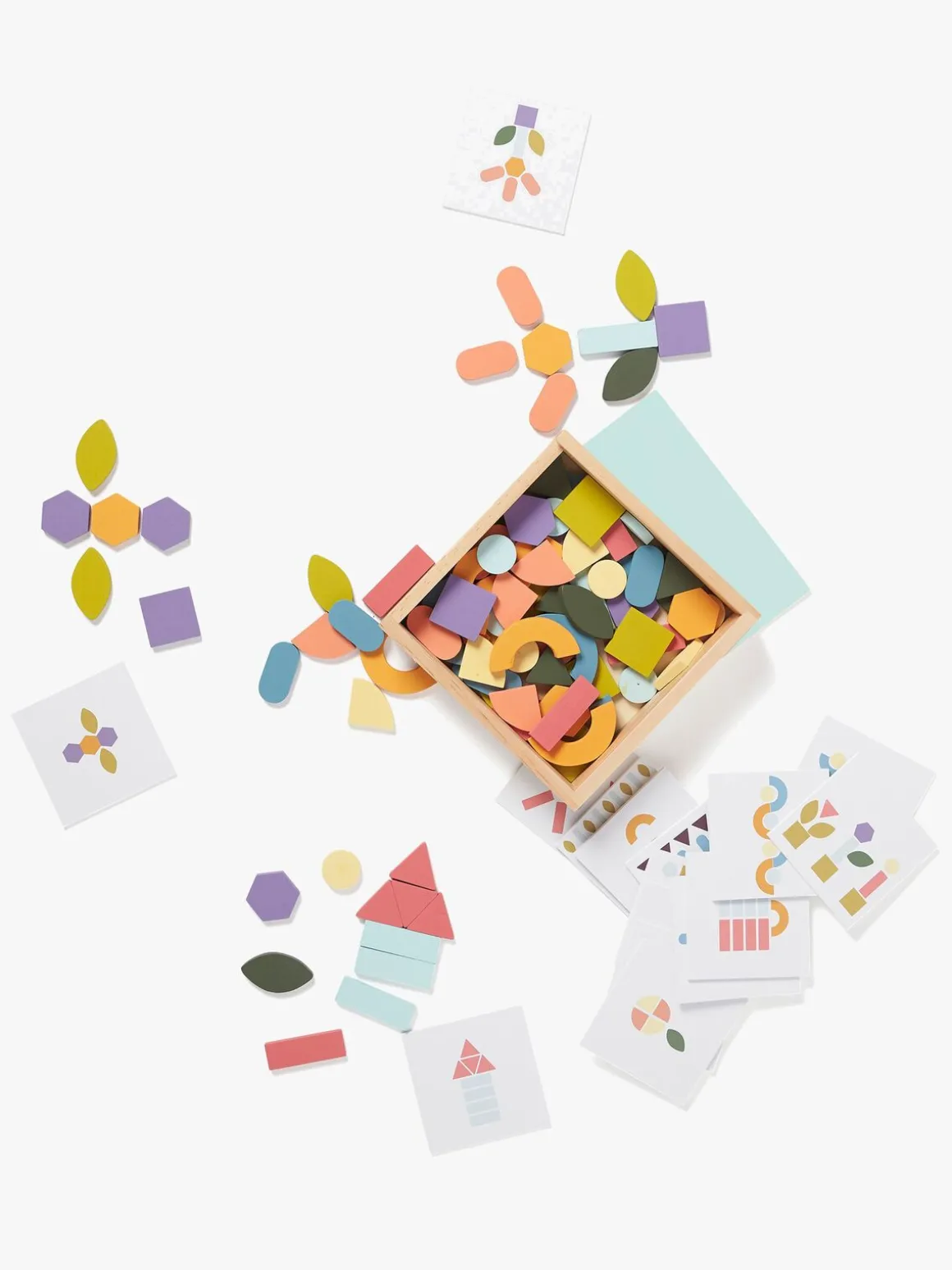 – Indeholder 96 forskelligformede træbrikker og 15 kort.