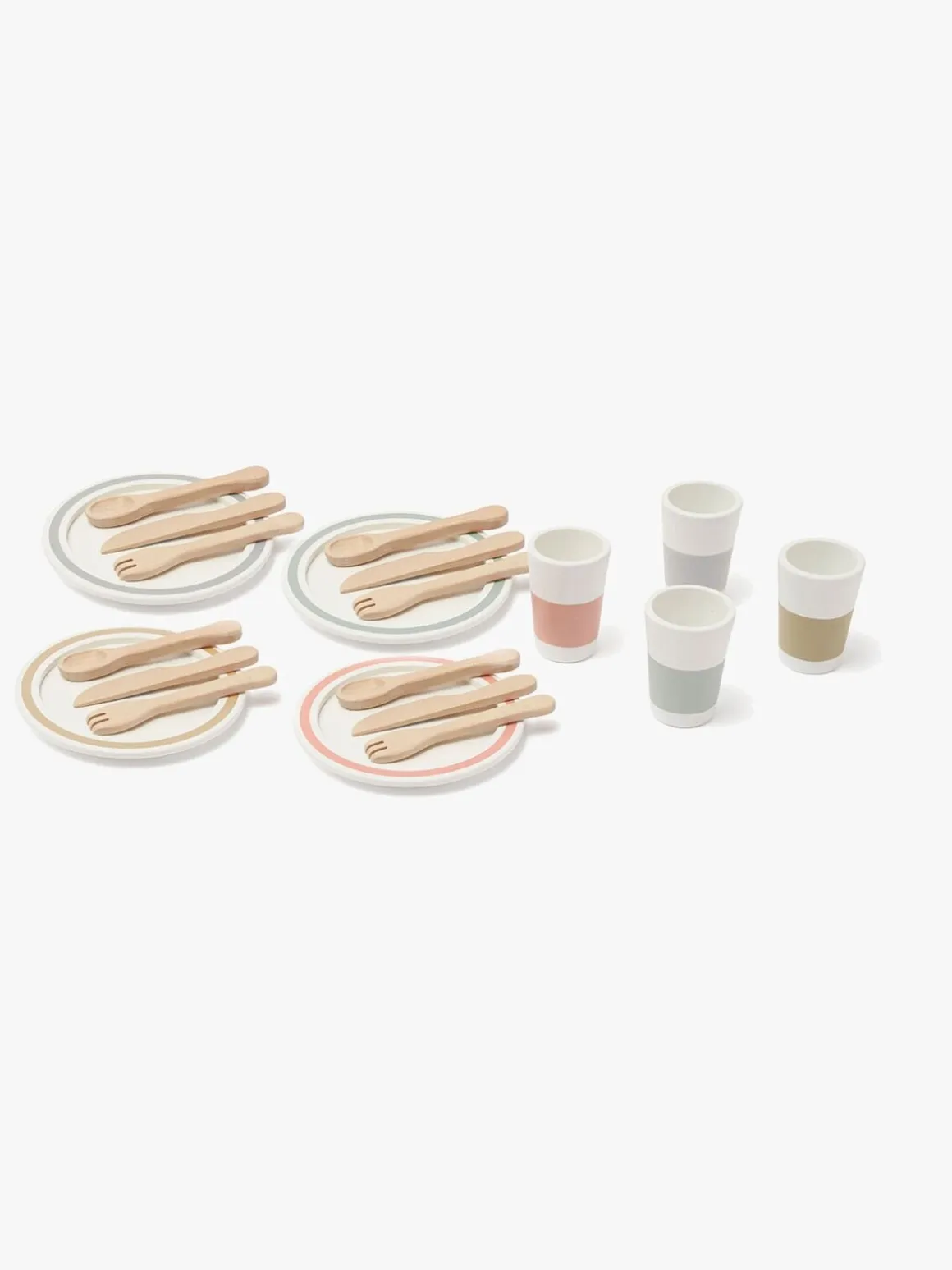 | Øvrige mål | Tallerken: 14x14x1,5 cm. Glas: 5x5x7,5 cm. Bestik: 12×2 cm |