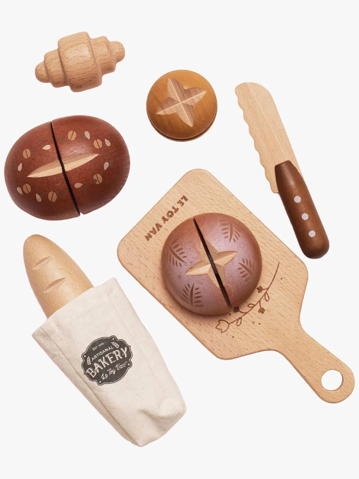– Indeholder: 1 Brødsæt, 1 skærebræt, 1 pose, 1 trækniv.