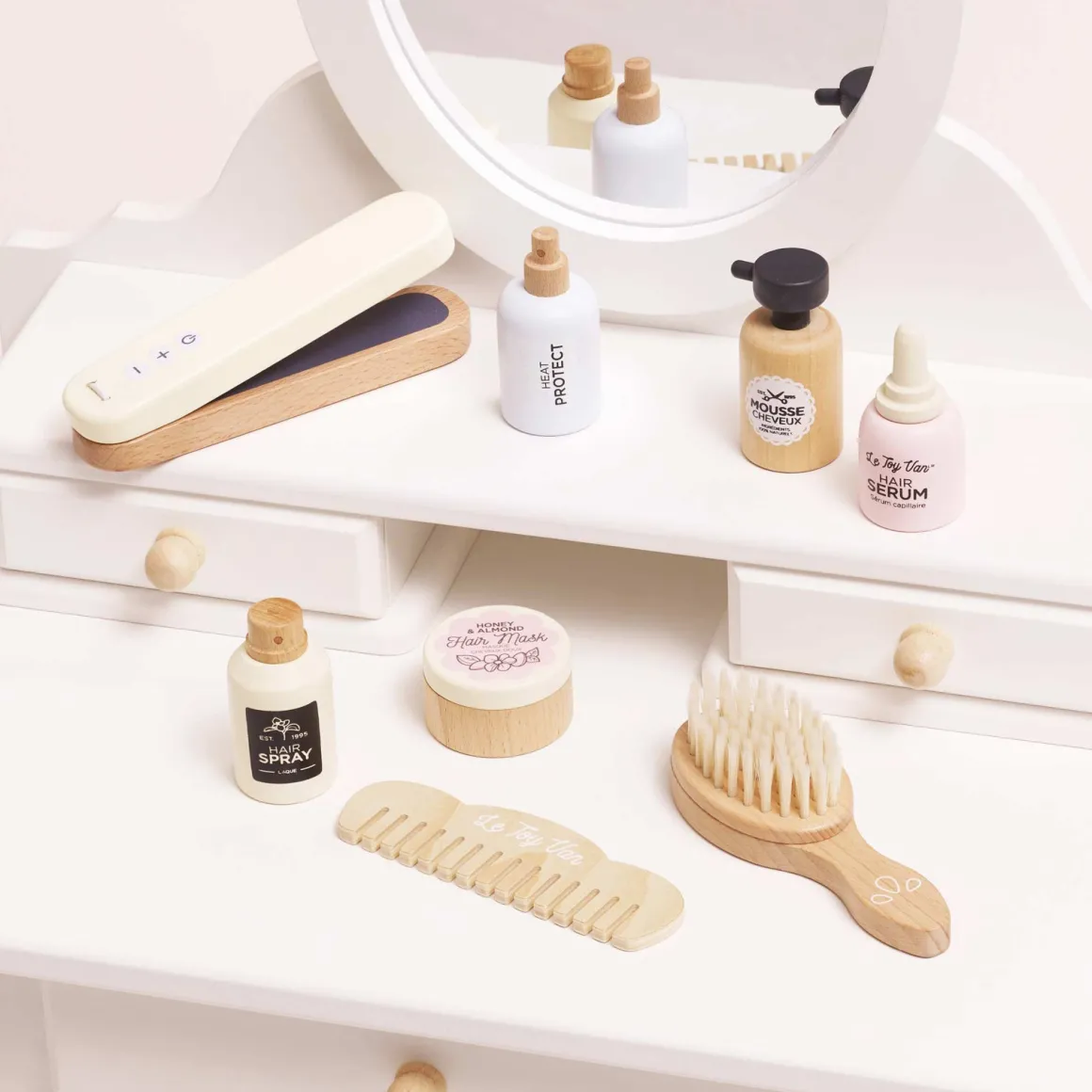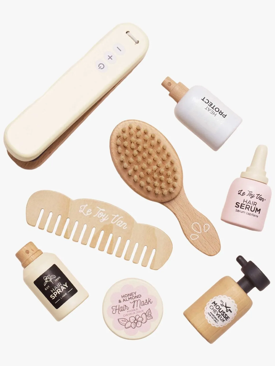 – Indeholder: 1 fladjern, 1 kam, 1 hårbørste, 1 sæt med sjove hårplejeprodukter.