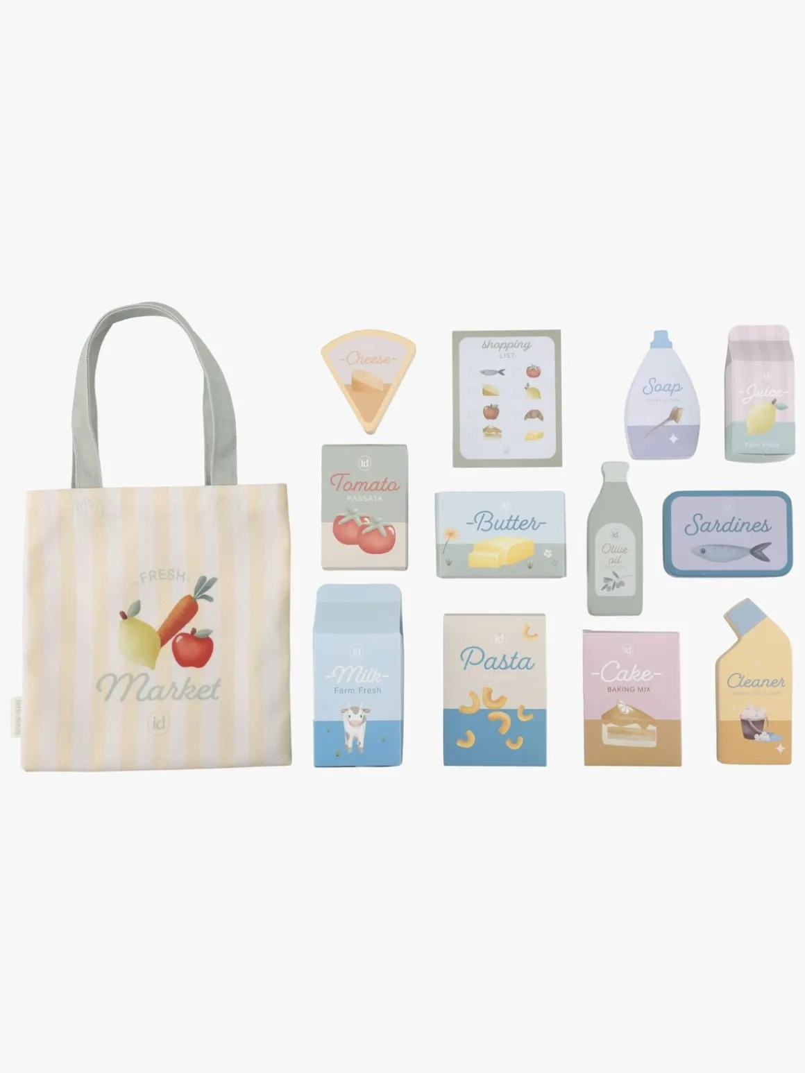 – Indeholder: 1 indkøbsvogn, 11 fødevarer, 1 taske, 1 indkøbsliste.