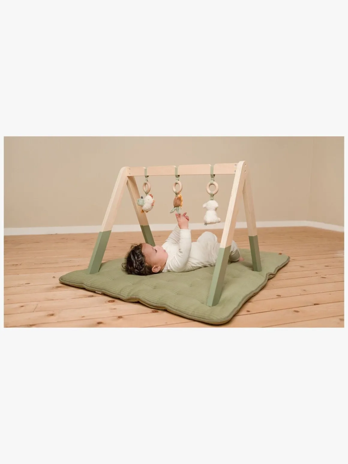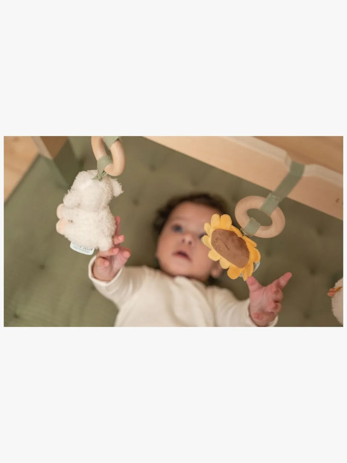 – Advarsler: For at forhindre mulige skader pga. sammenfiltring skal du fjerne dette legetøj, når barnet begynder at forsøge at komme op på hænder og knæ.