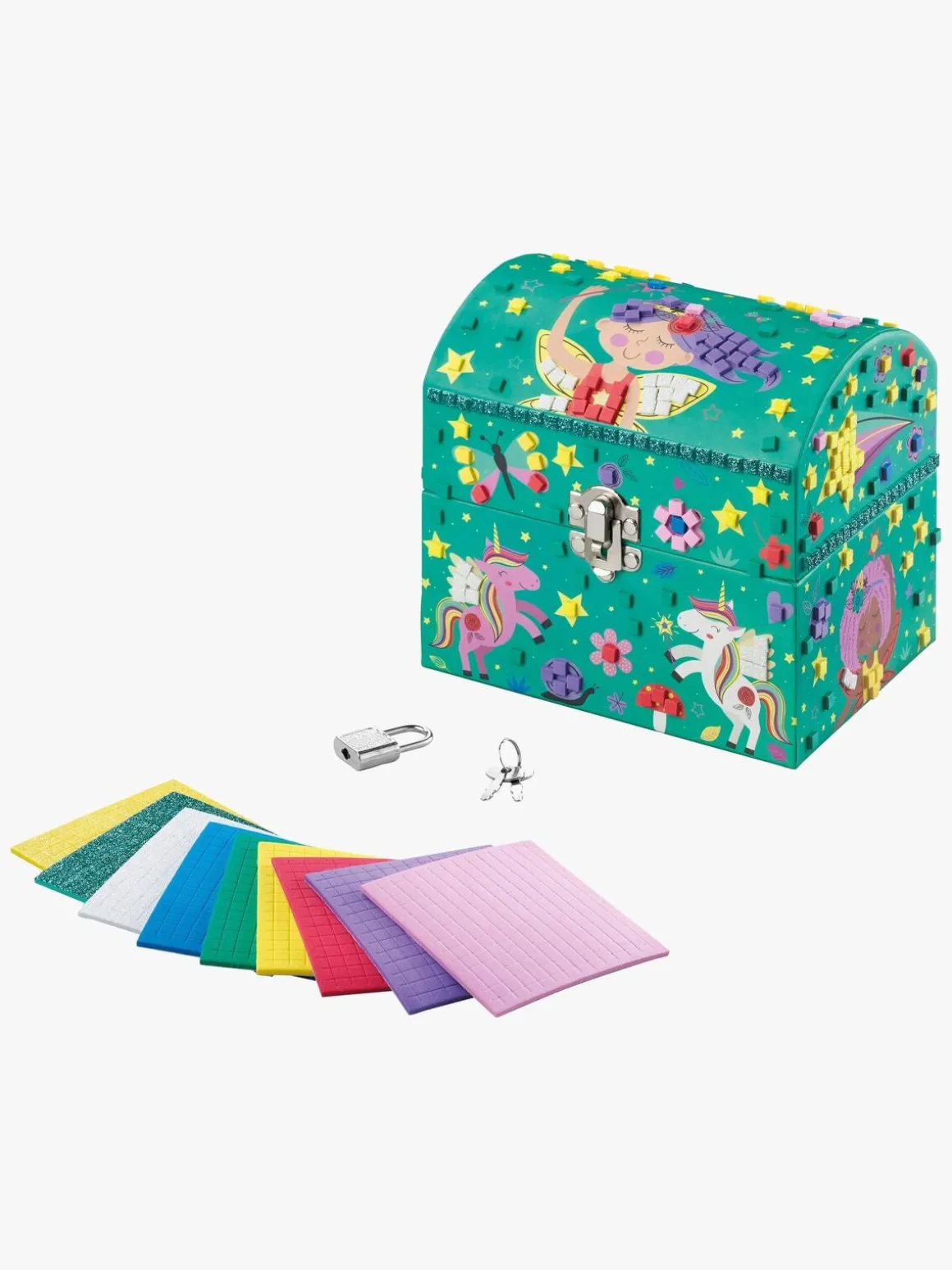 – Indeholder: 1 smykkeskrin, 9 mosaik-kreasæt, 1 hængelås.