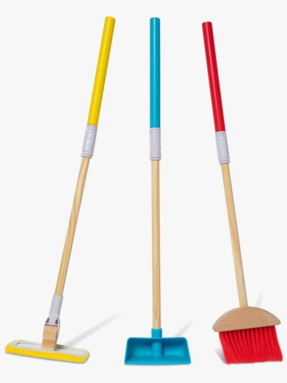– Indeholder: 1 fejekost, 1 fejebakke, 2 mopper, 1 fnugbørste, 1 støvekost, 1 rengøringsstativ, 1 sprayflaske, 1 rengøringsklud, 1 aktivitetskort, 1 vaskesvamp.