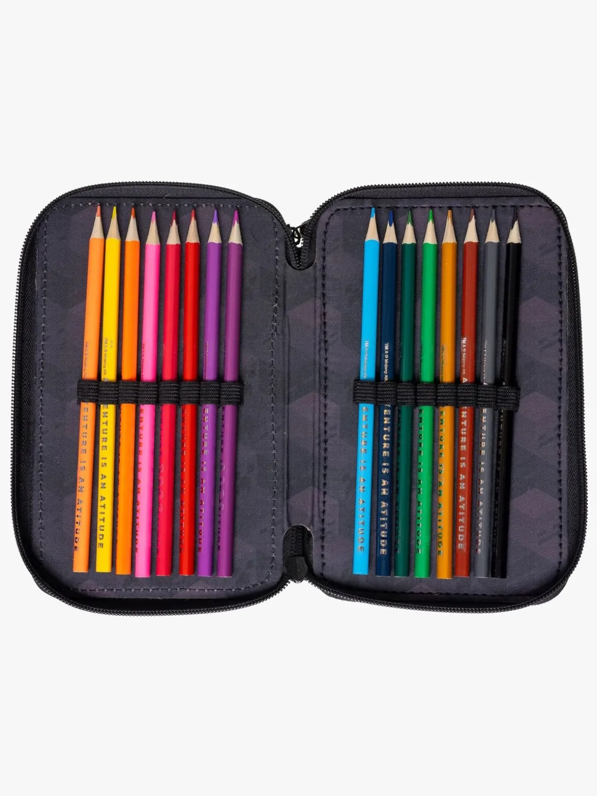 – Indeholder: 1 penalhus, 16 farveblyanter, 1 notesblok, 1 viskelæder, 1 blyantspidser, 1 lineal, 2 blyanter.