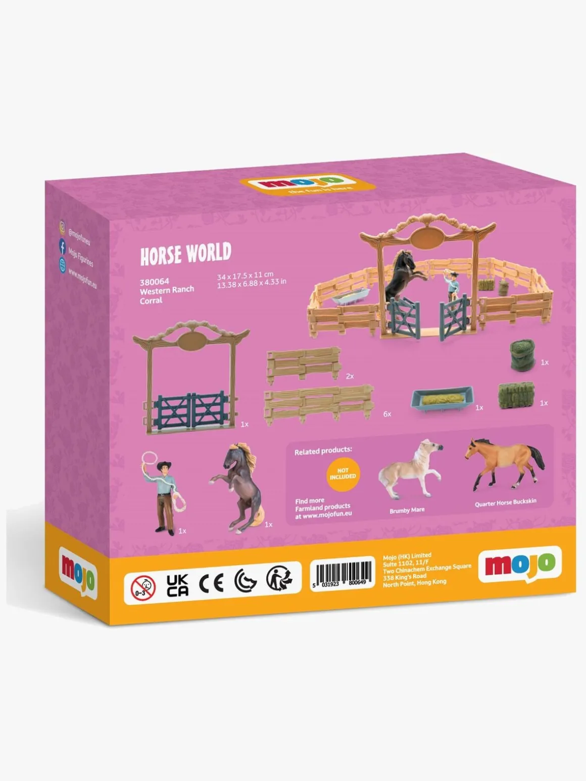 – Indeholder: 1 cowboy, 1 hest, 8 hegnstykker, 1 låge, 1 pose, 1 halmballe, 1 food feeder.